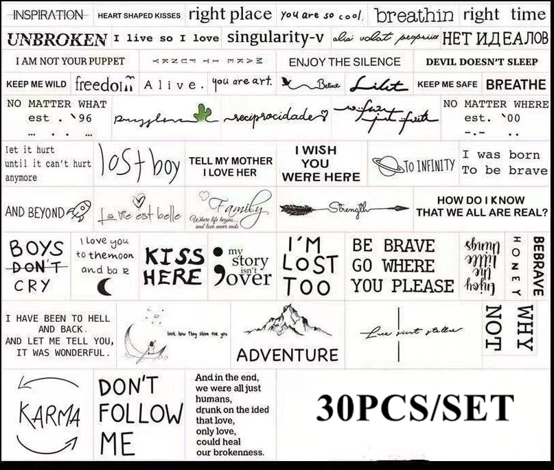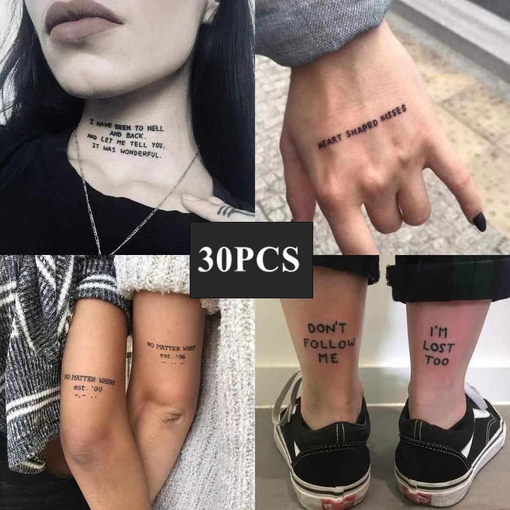30PCS Waterproof Temporary Tattoo Sticker Black Devil Doesn't Sleep English Letters Flash Tatoo Fake Tatto Neck Wrist For Woman