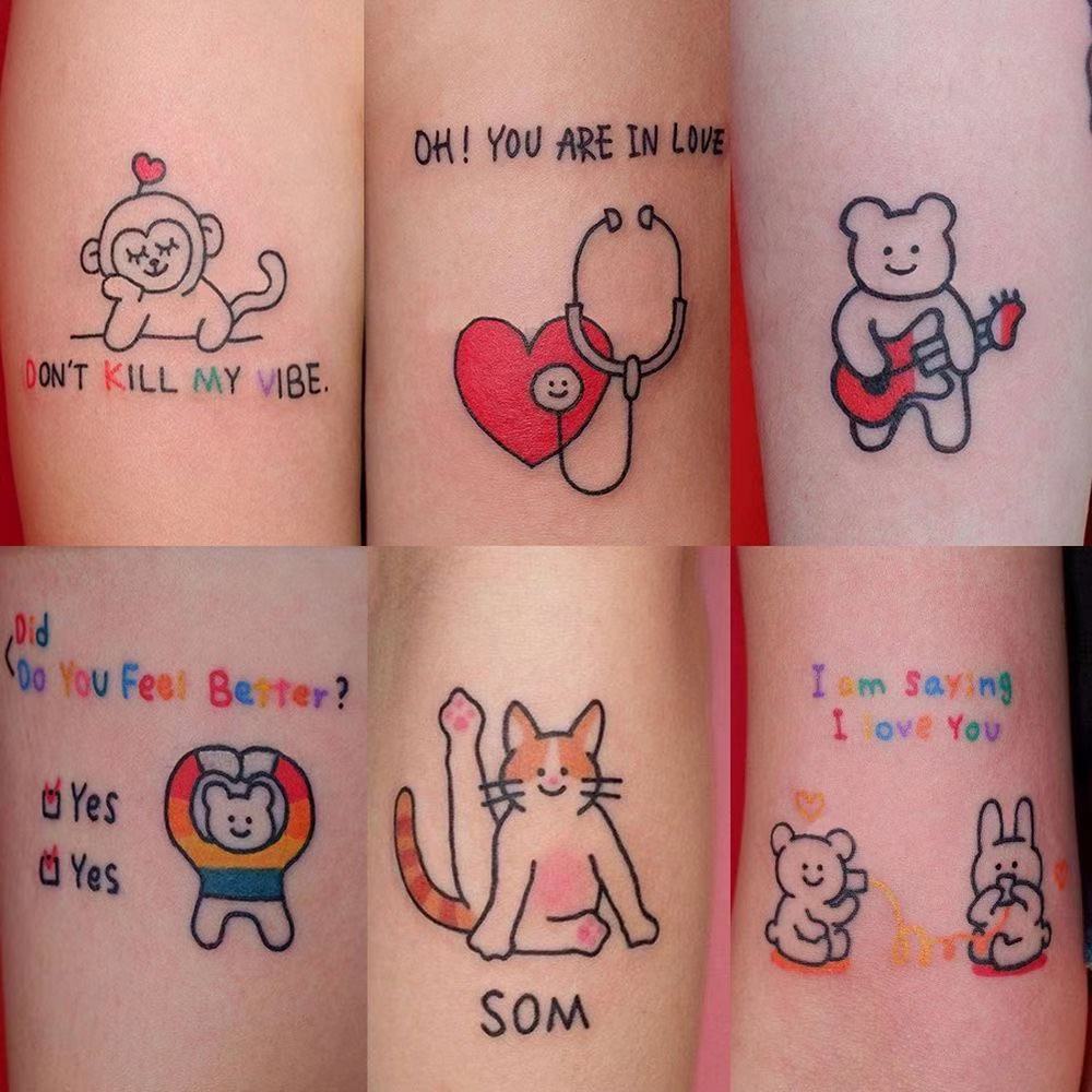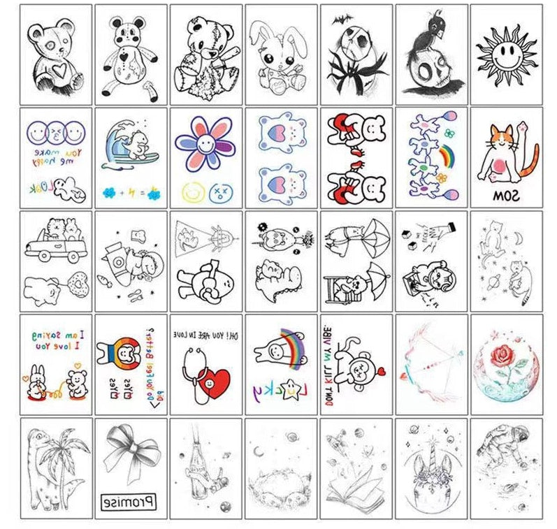 37PCS Cartoon Black Waterproof Fake Tattoo Stickers For Women Men Body Art Temporary Tatto Colorful Decals