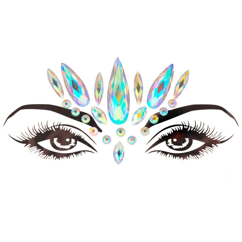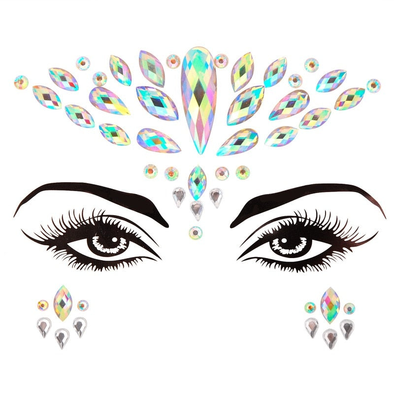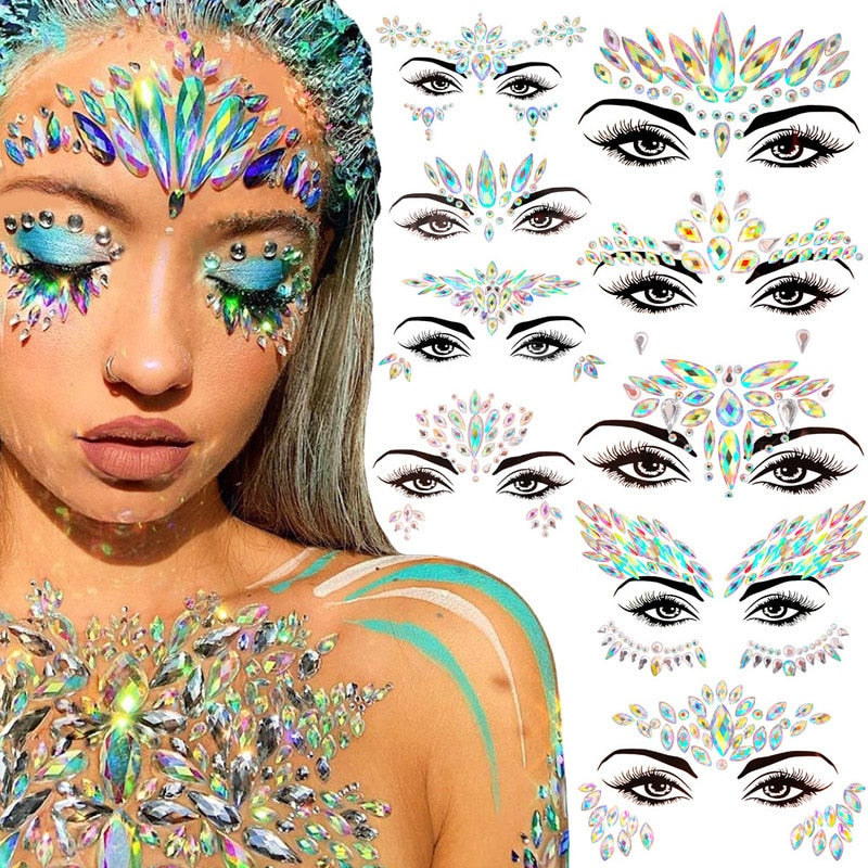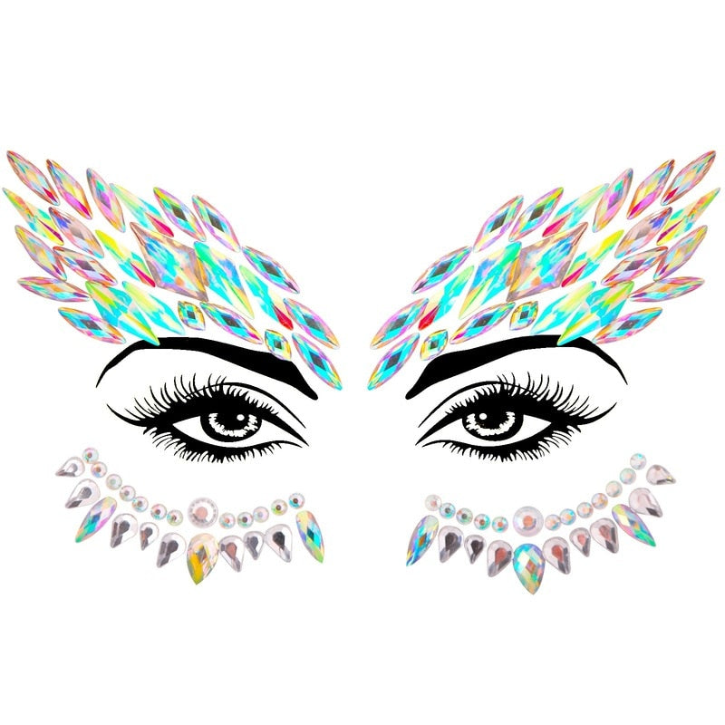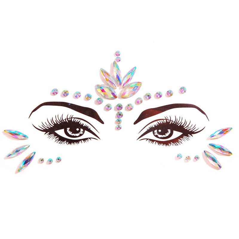 3D Acrylic Glitter Rhinestone Temporary Sexy Face Tattoo Sticker DIY Kids Holiday Party Masquerade Body Facial Jewelry Tattoo