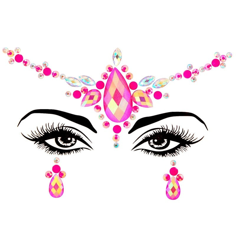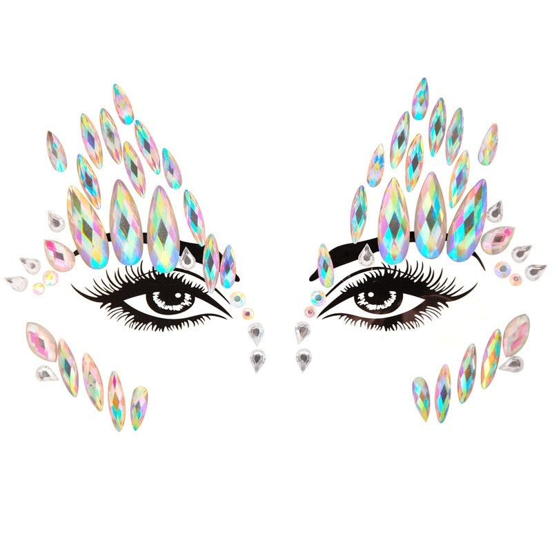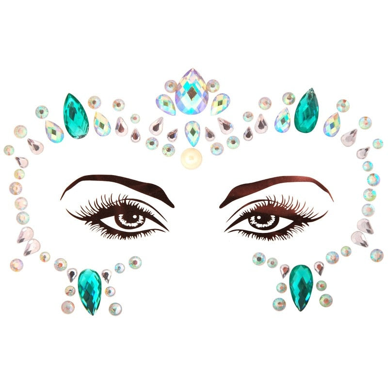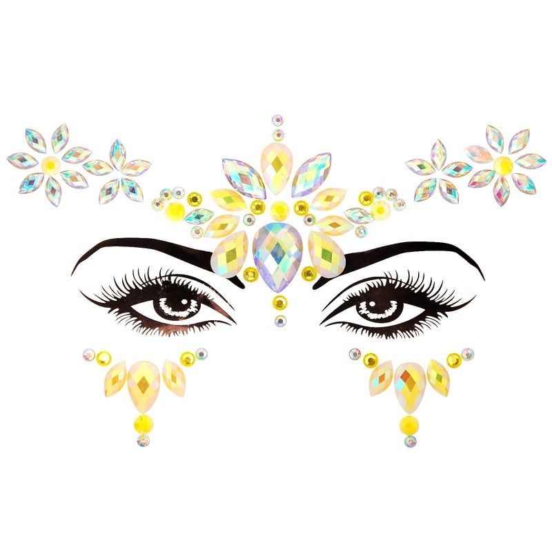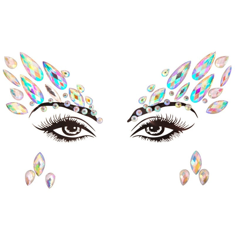 3D Acrylic Glitter Rhinestone Temporary Sexy Face Tattoo Sticker DIY Kids Holiday Party Masquerade Body Facial Jewelry Tattoo