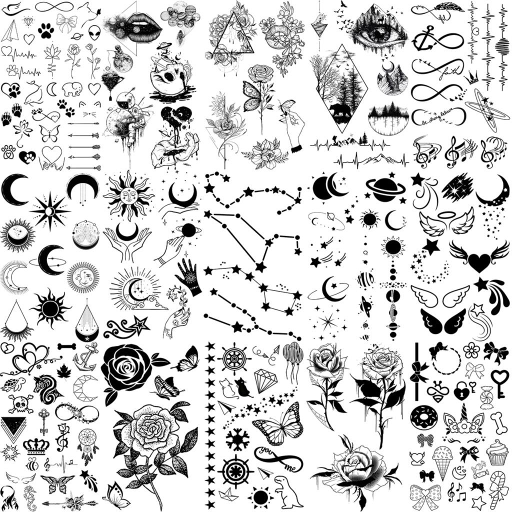 3D Constellation Rose Mountains Tatoos Temporary Tattoos For Women Men Star Moon Sun Realistic Fake Tattoo Small Washable Tatoos
