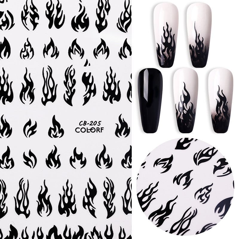 3D Iridescent Black White Design Fire Nail Stickers Sliders Manicures Accessories Decals DIY Nail Art Decorations Decor Tool