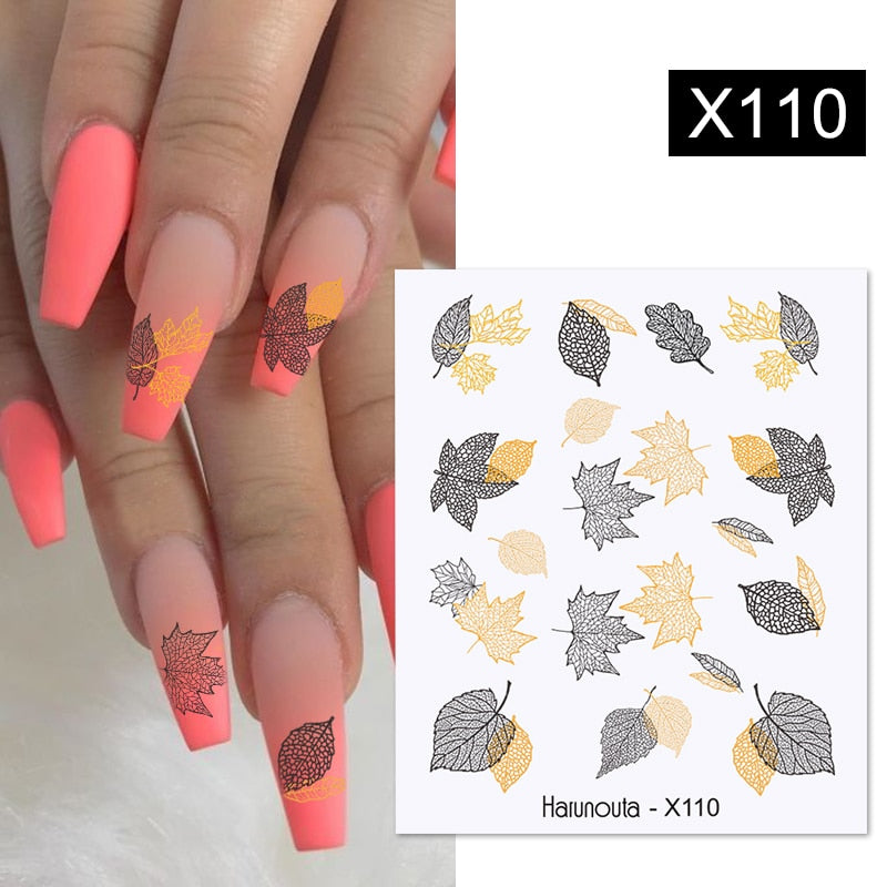 3D Nail Stickers Fan Leaf Dried Flower Shiny Sliders Nail Art Decorations Lucky Clover Fashion Foil Manicures