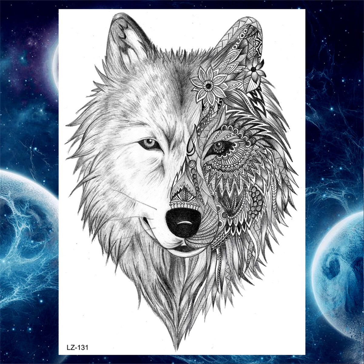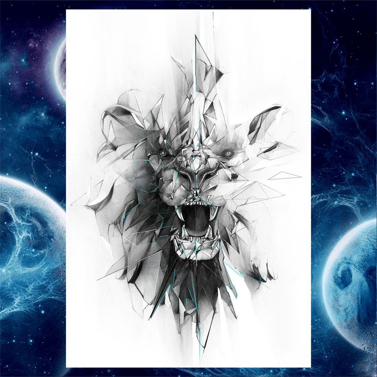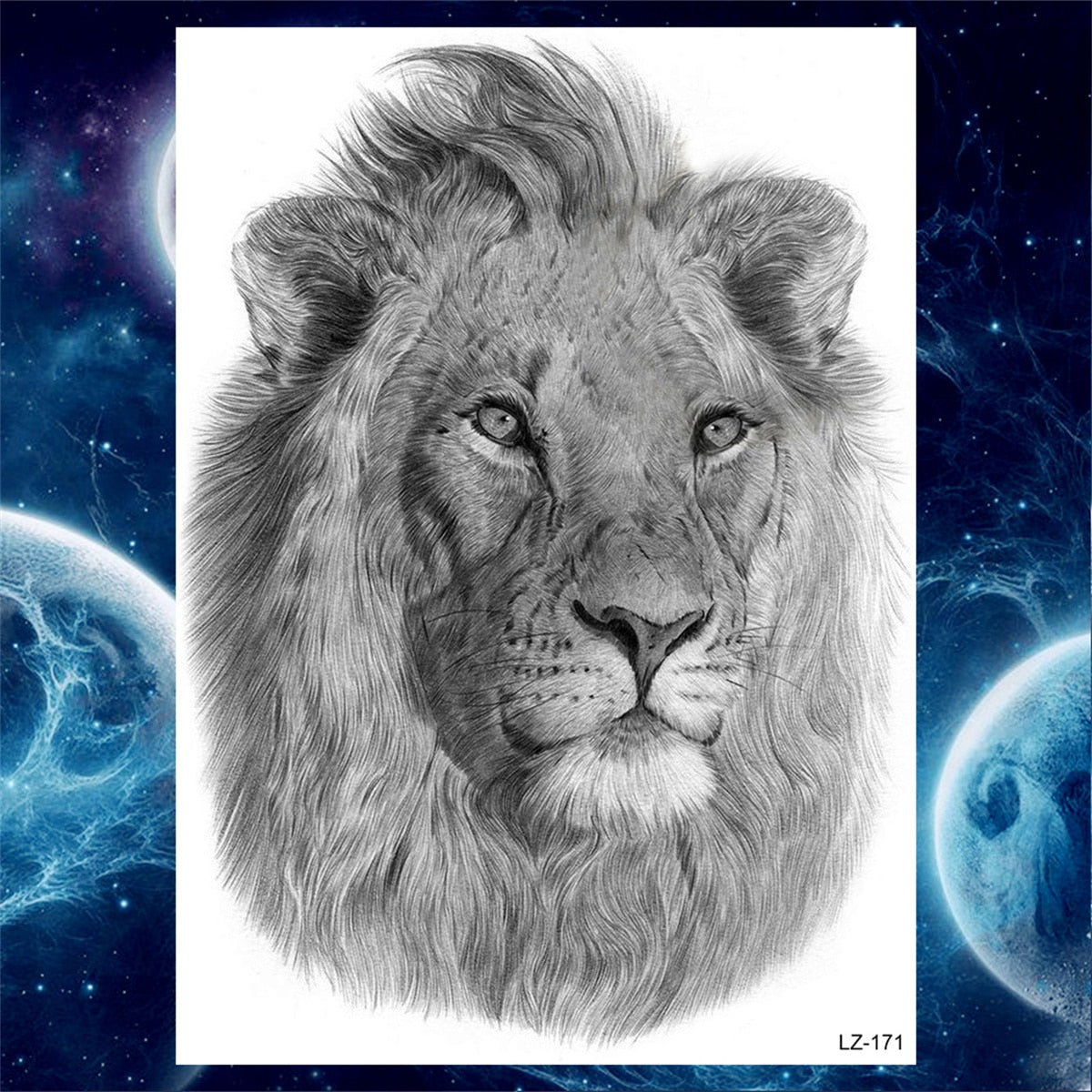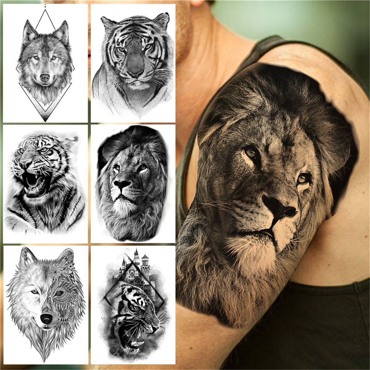 3D Realistic Fake Lion Temporary Tattoos For Men Women Adult Monster Tattoo Sticker Black Wolf Tiger Animals Large Tatoos Paste