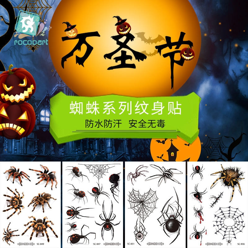 3D Spider Tattoo Stickers Temporary Tatoo Stickers For Halloween Fake Tatto Body Art Tatuajes Joke Tatouage Temporaire