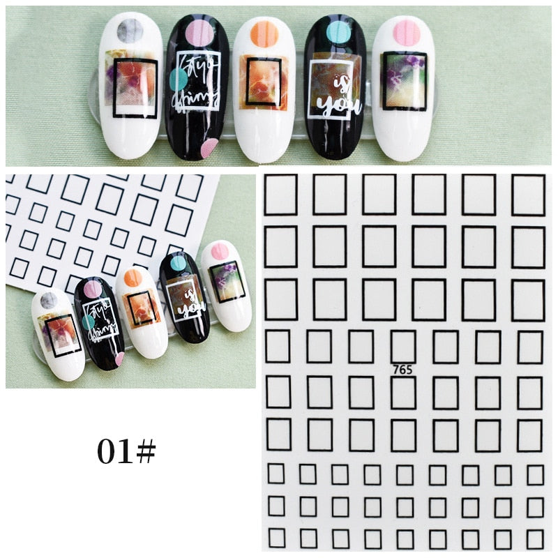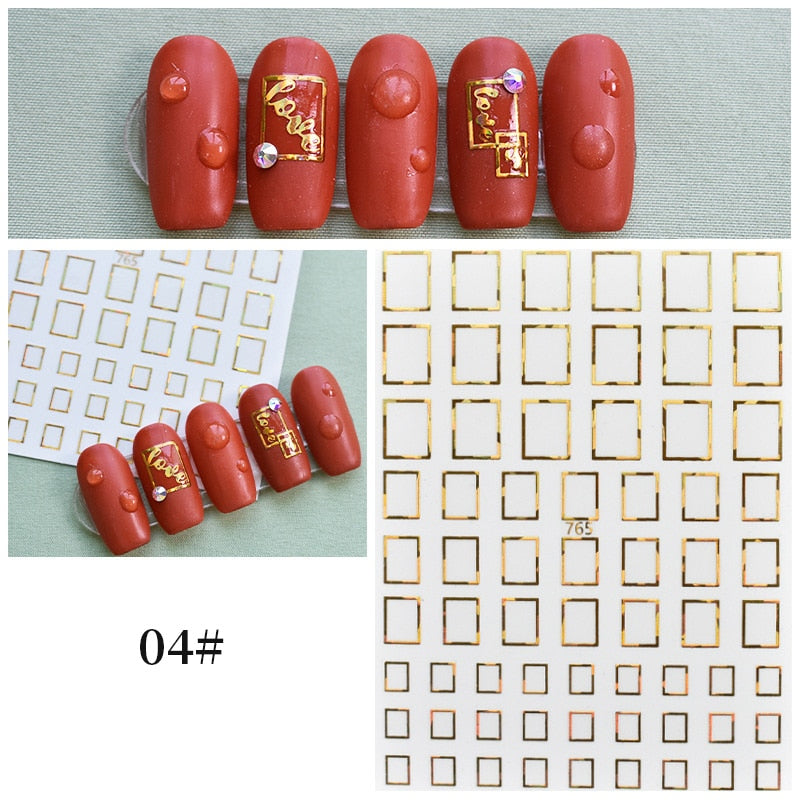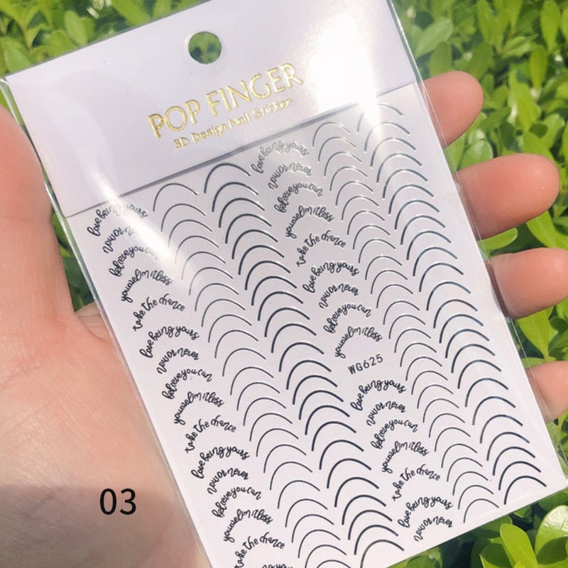 3D Stickers Bendable Gold Silver Lines Striping Tape Sticker Black White Lines Geometry Slider Decals For Manicures Decor