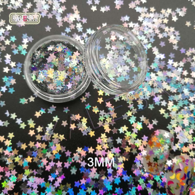 3mm Sequins DIY Flat Five-pointed Star Moon Sequin Paillettes Sewing Craft DIY Laser Silver Nail Sequin Accessories Decorations