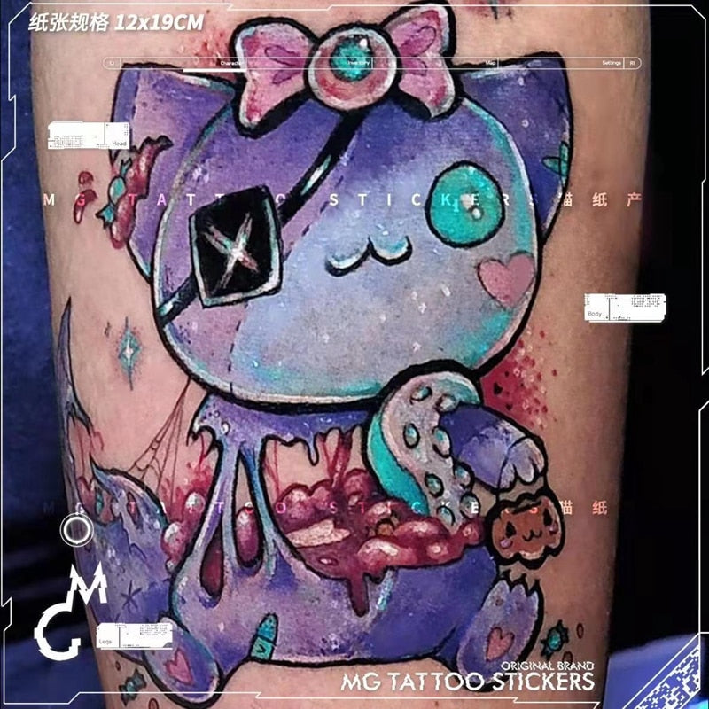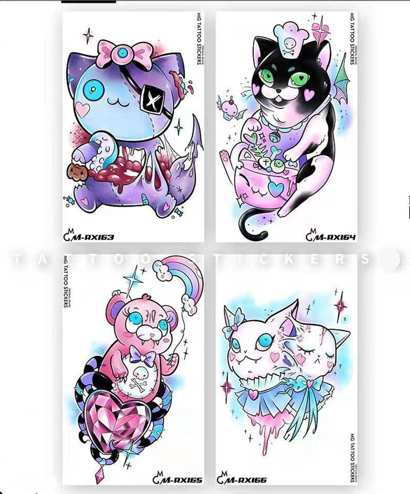 4pc/Lot Cartoon Cat Temporary Tattoo Stickers Set Female Waterproof Personality Cool Bear Watercolor Fake Tattoo Arm Dark Tattoo