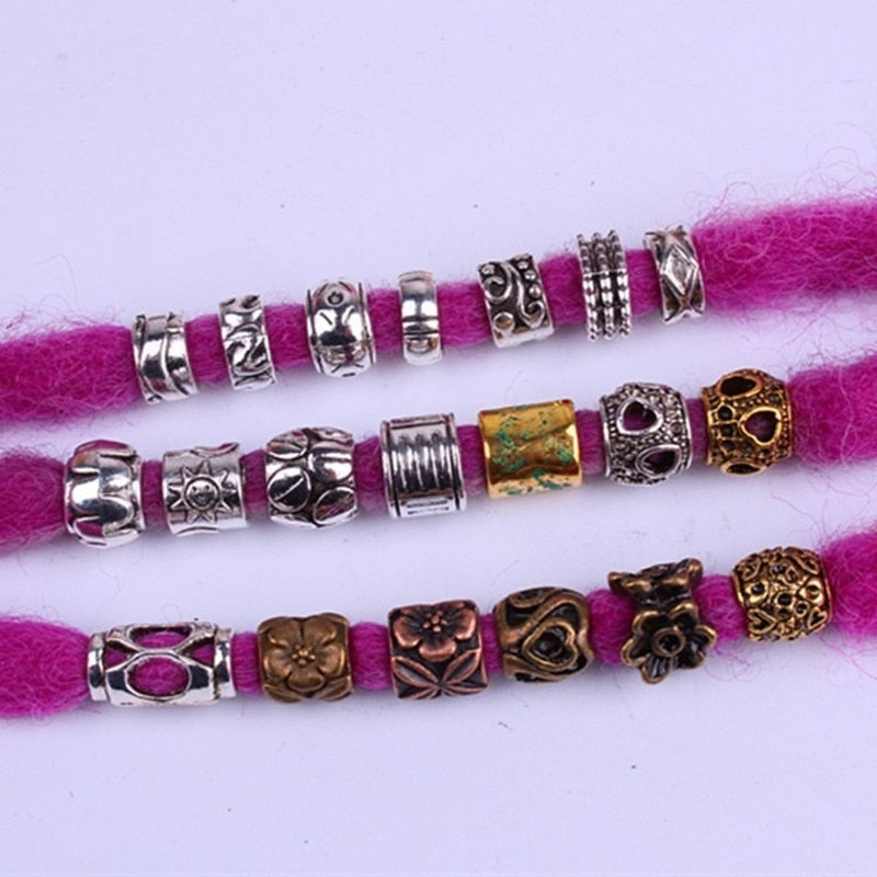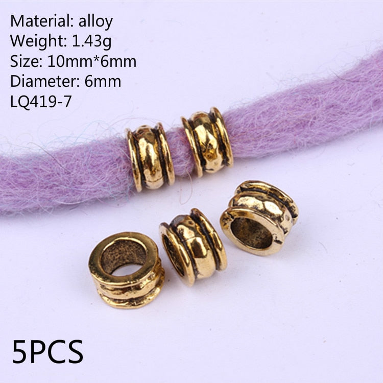 5 Pcs/set Viking Beads 14 Kind Silver Beads for Braiding Dreadlock Hair Decor Cuff Clip Beaded Hair Scrunchies Tibet Bead Tube