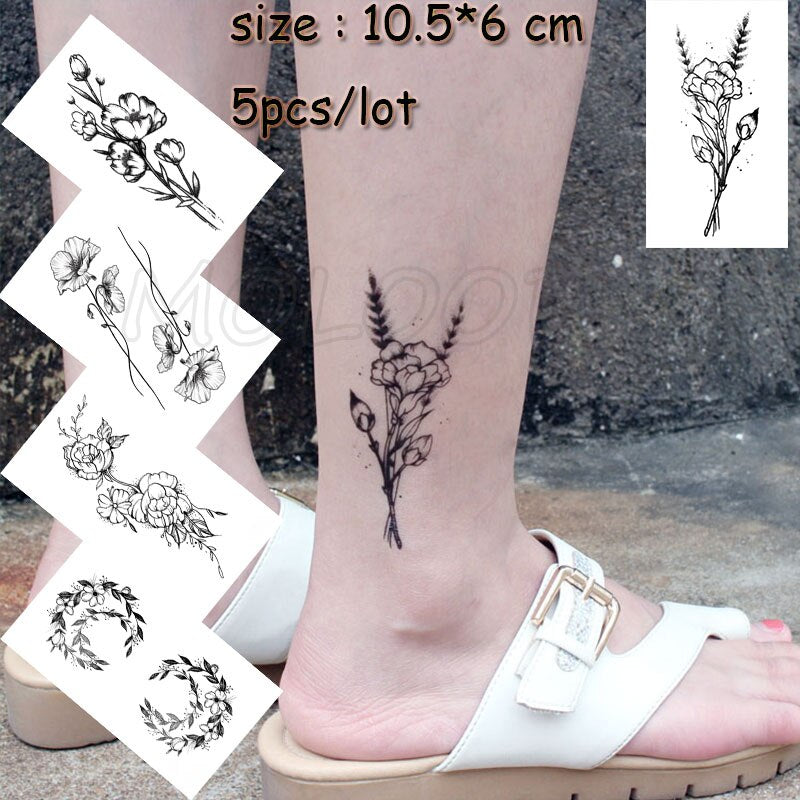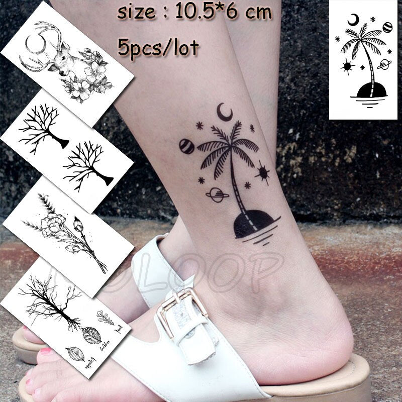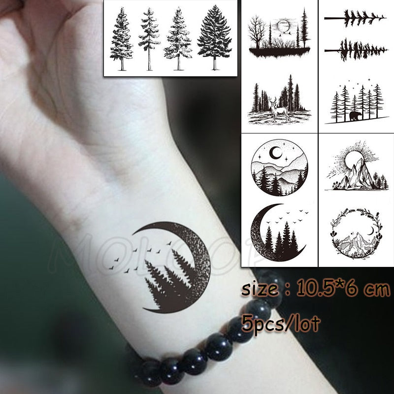 5 Pcs Temporary Tattoo Sticker Tree Bird Moon Sun Forest Waterproof Fake Tatto Water Transfer Tatoo Art for Kid Girl Woman Man