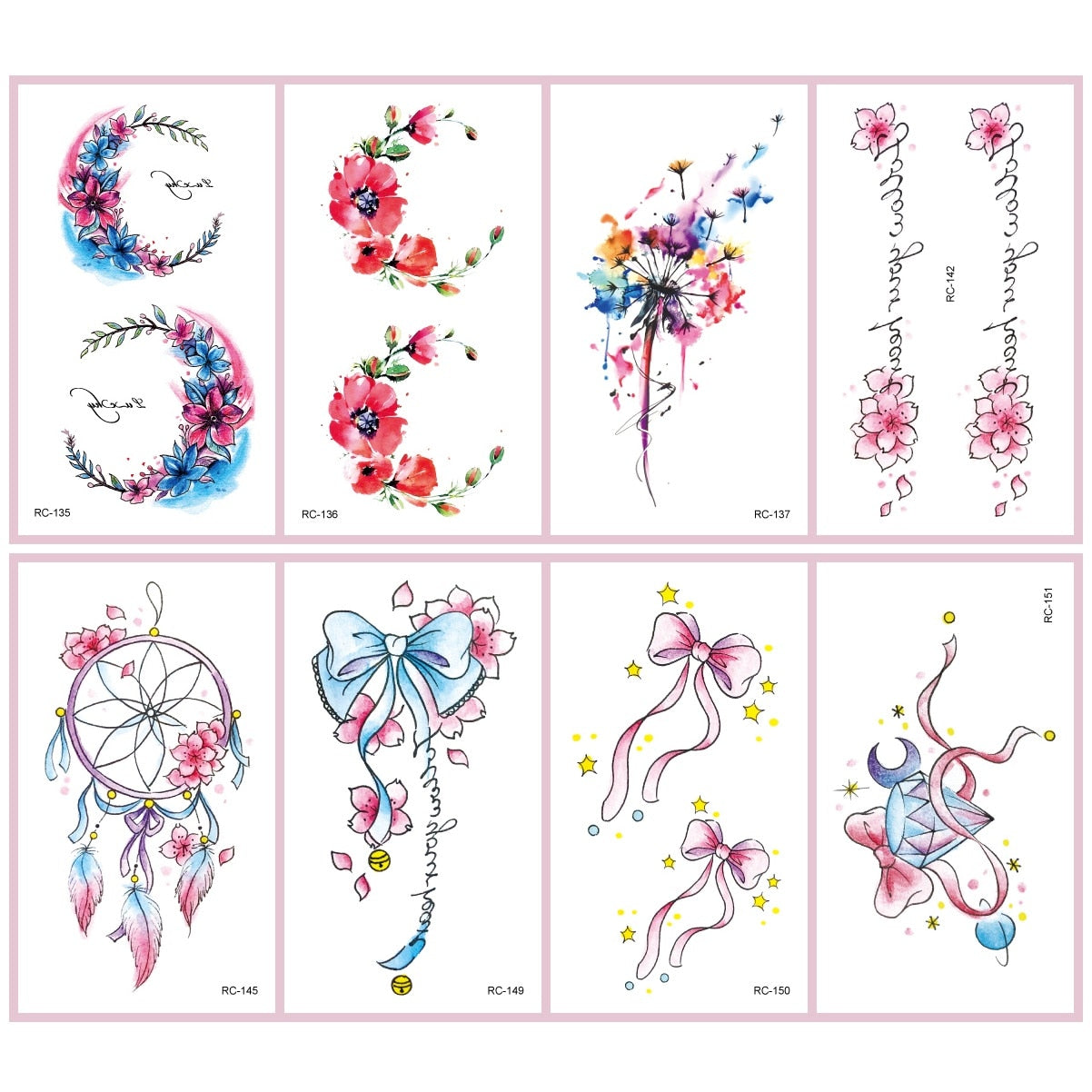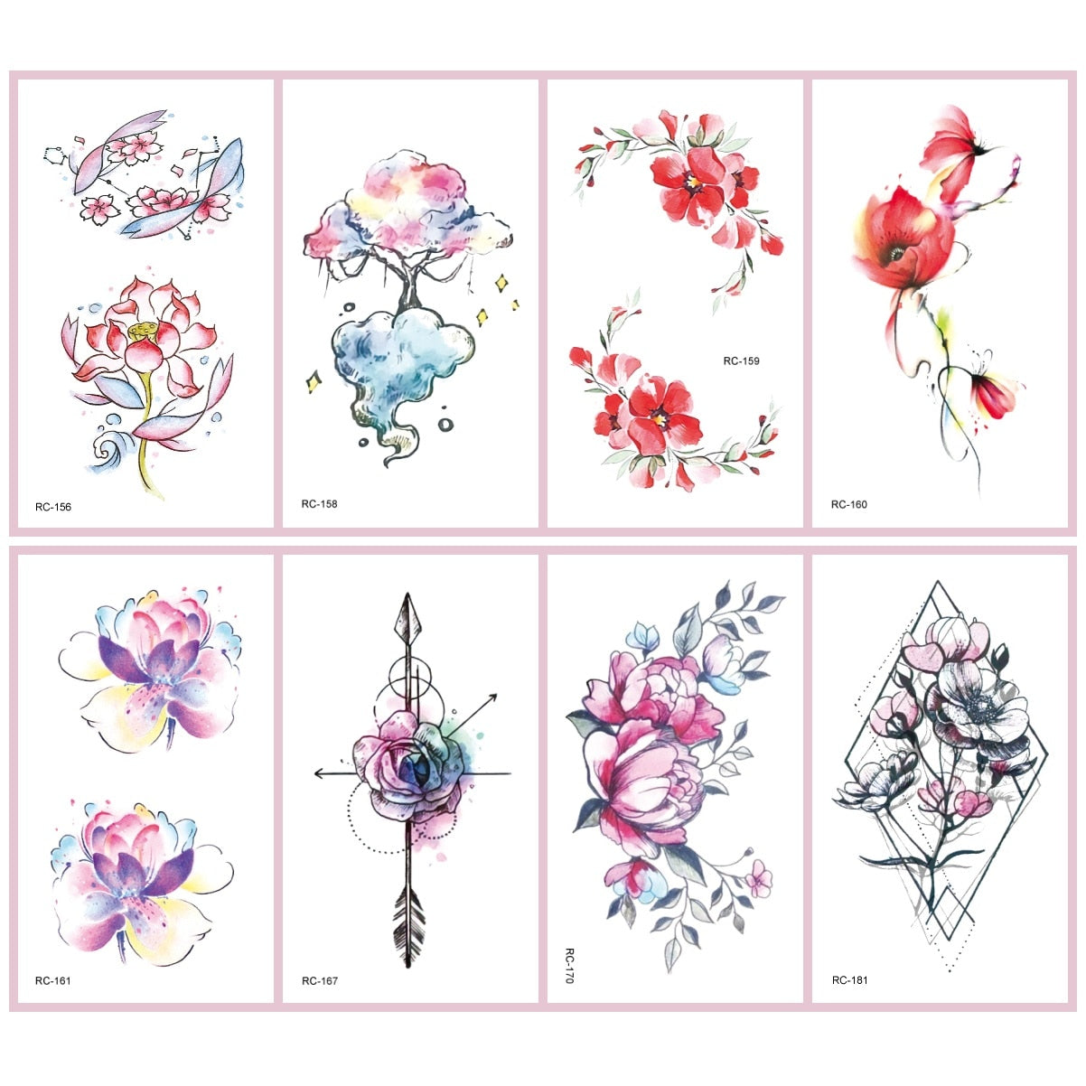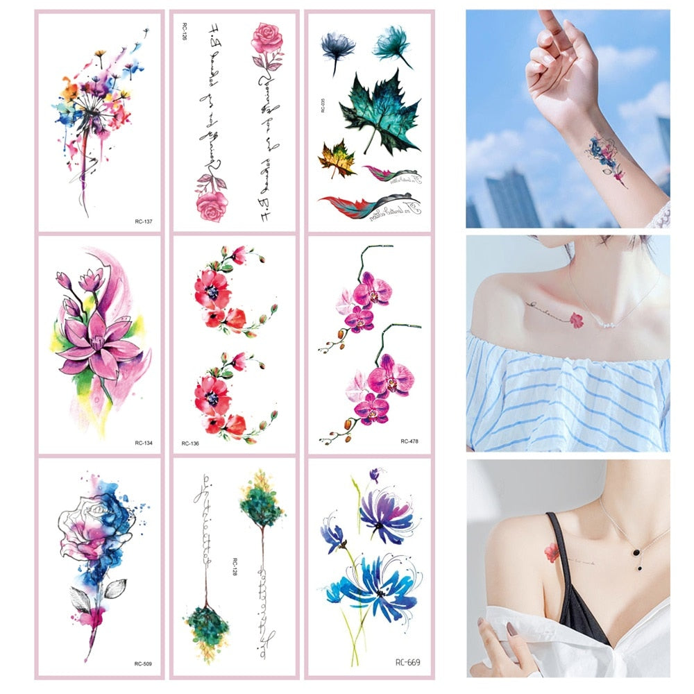 52 Kinds Watercolor Flora Lavender Waterproof Fake Tattoos Temporary Women Arm Chest Ankle Stickers Floral Body Art Tatto Flower