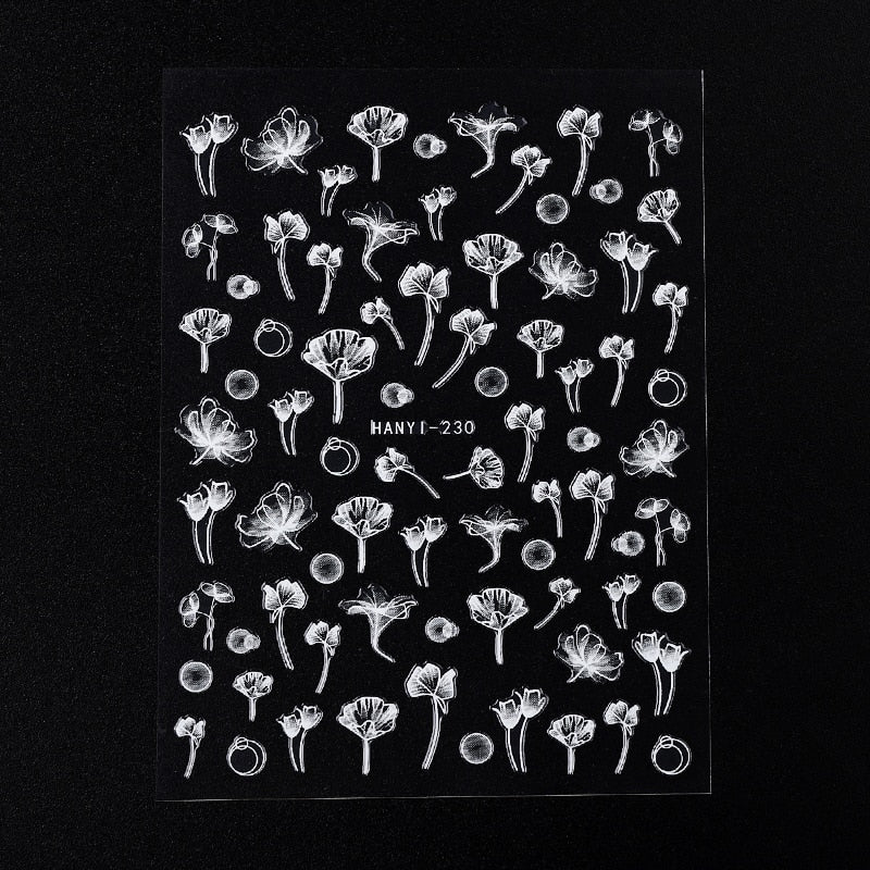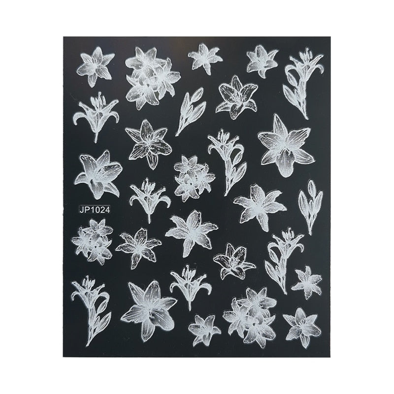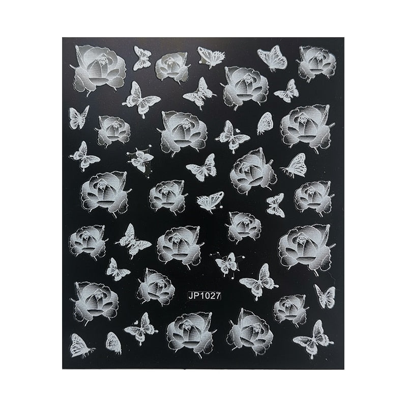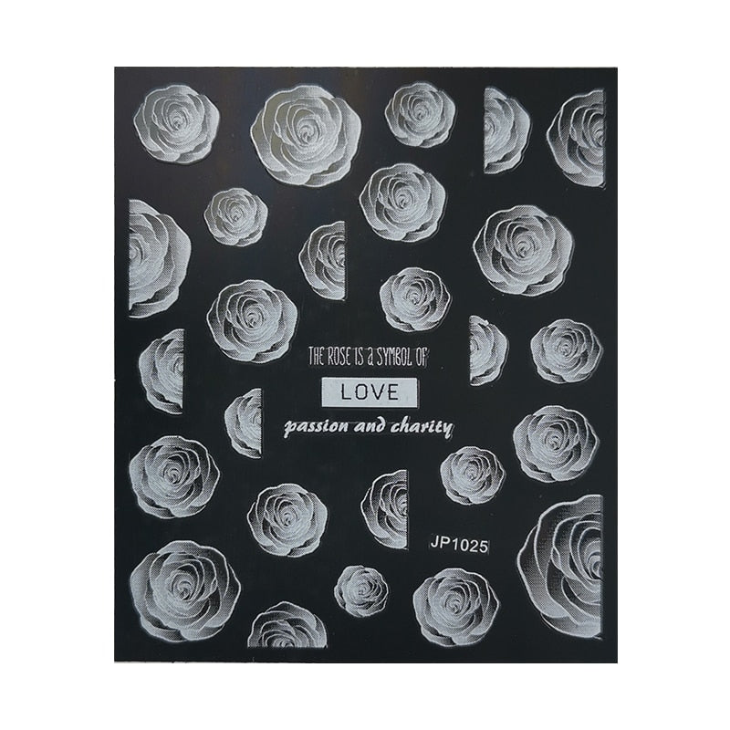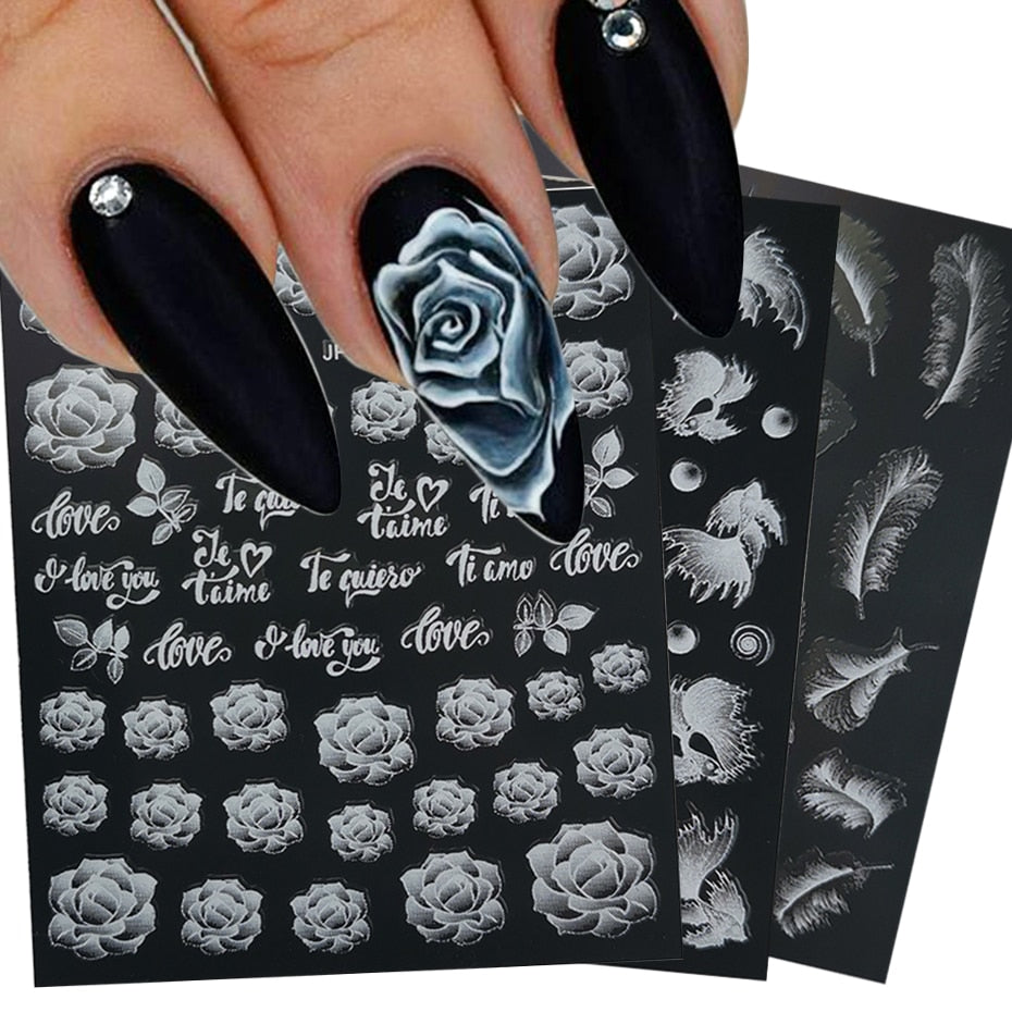 5D White Nail Sticker Rose Flower Engraved Embosse Design Transfer Decals Slider Wraps DIY Nail Art Decoration Accessories