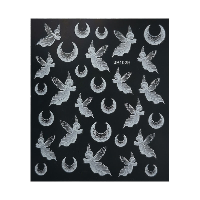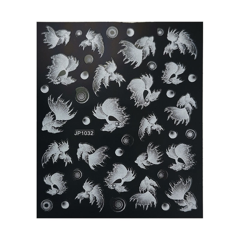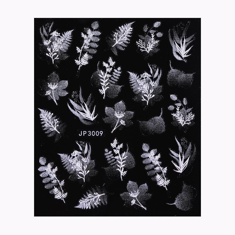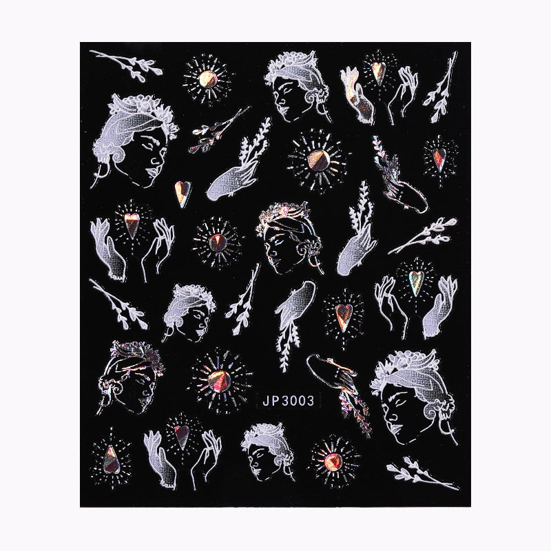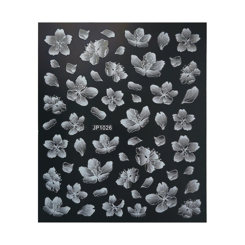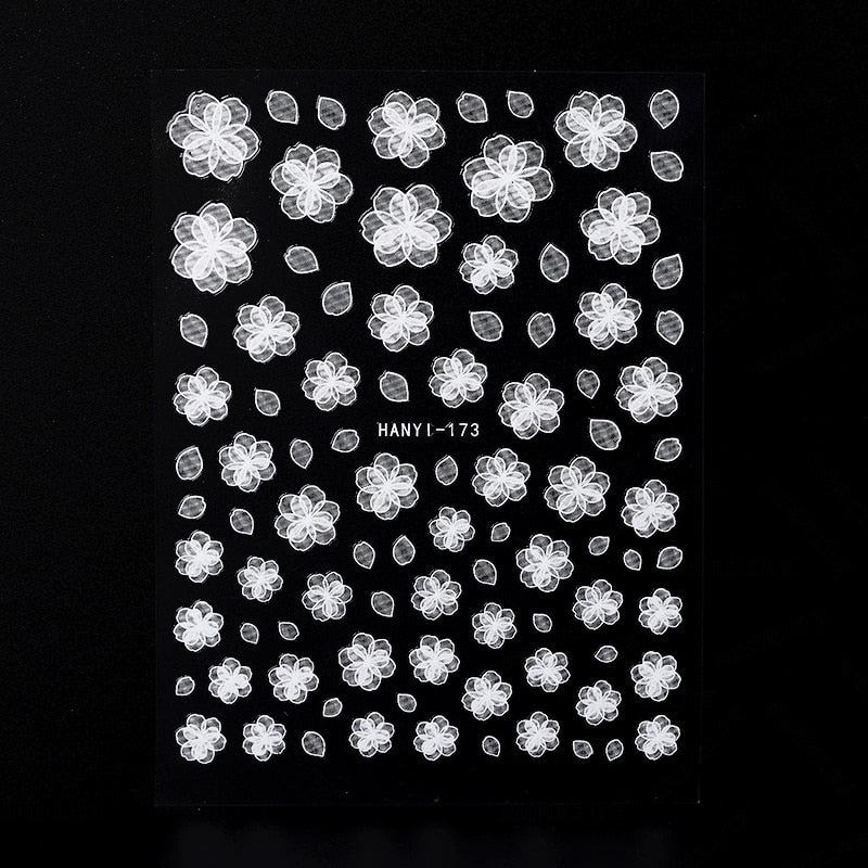 5D White Nail Sticker Rose Flower Engraved Embosse Design Transfer Decals Slider Wraps DIY Nail Art Decoration Accessories