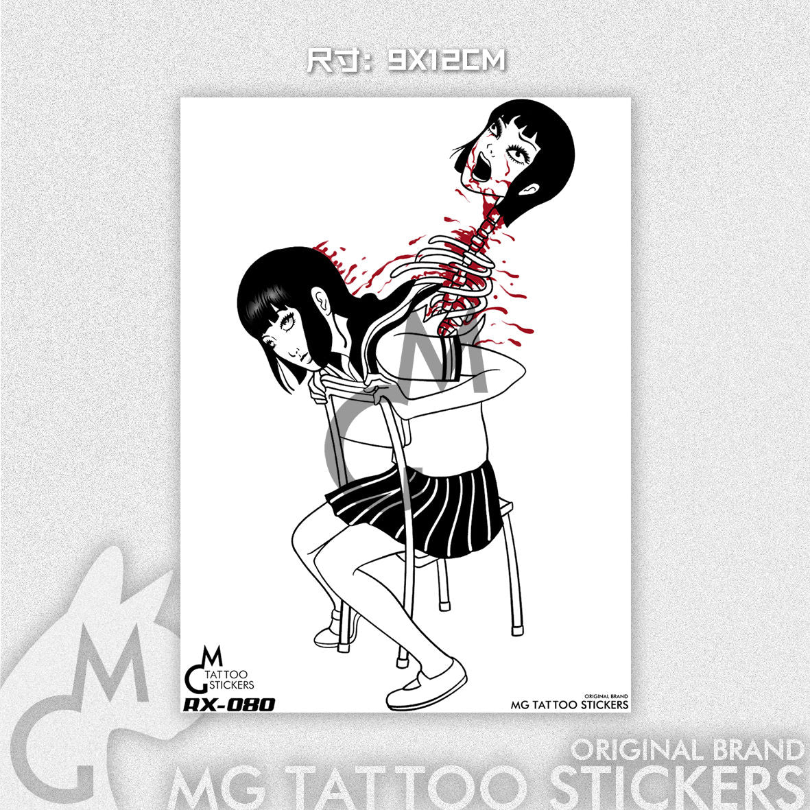 9*12cm Japanese Horror Man Ito Junji Horror School Girl Pattern Dark Tattoo Sticker
