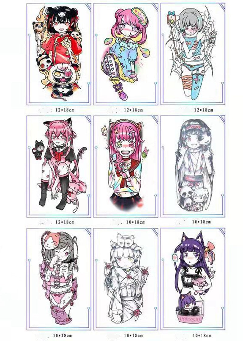 9pc/Sheets Cartoon Japanese Beautiful Girl Temporary Tattoo Stickers Female Waterproof Kids Cute Fashion Fake Tattoo Arm Tattoo