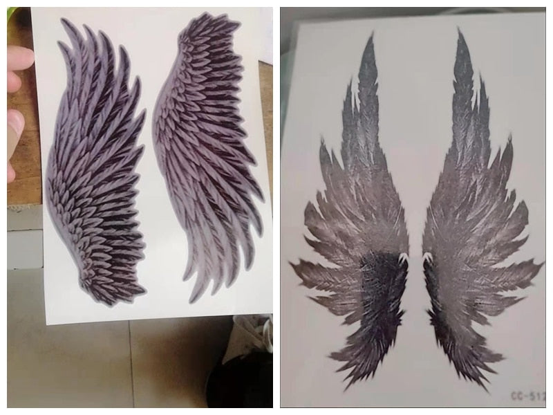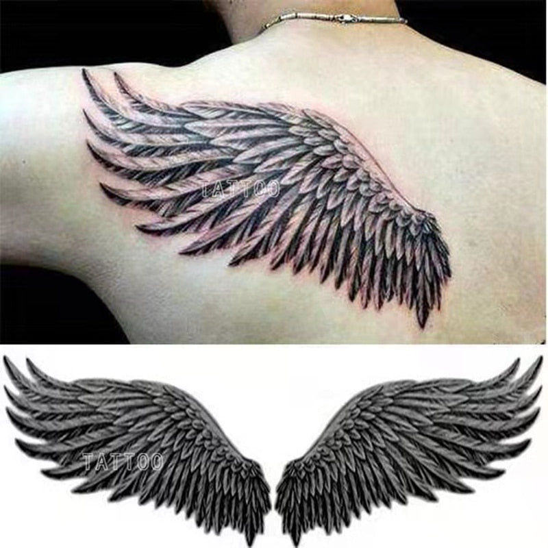 A Pair of Large Wings Tattoo Stickers on The Chest Back Waterproof Temporary Fake Tattoo Neck Feather Art Tattoos for Men Women
