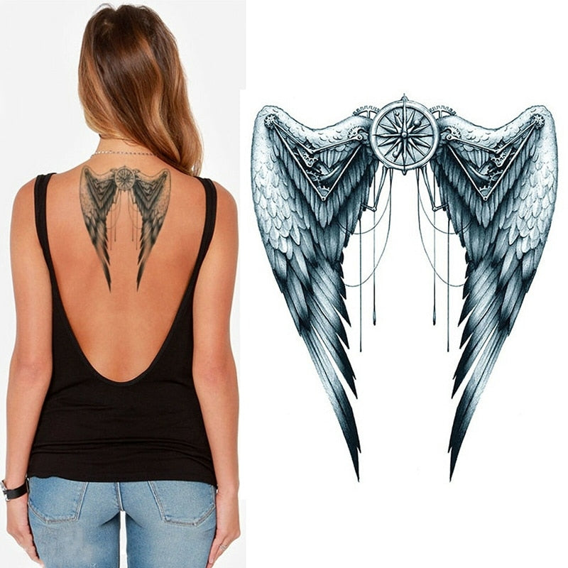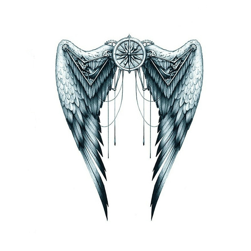 Angel Wings Temporary Tattoo - Mechanical Grey Body Art Festival Womens Mens