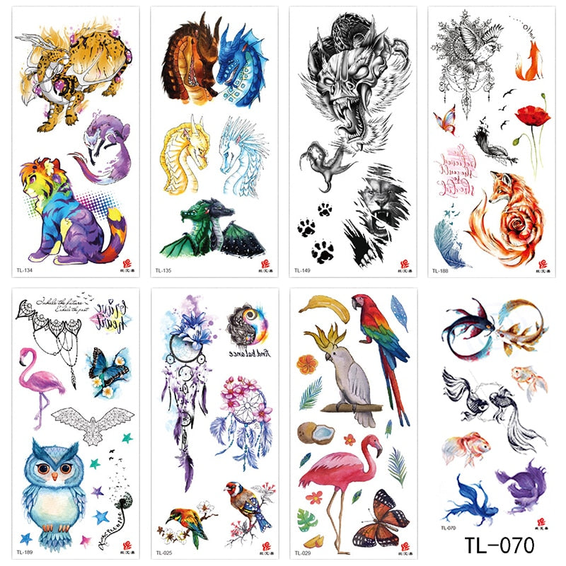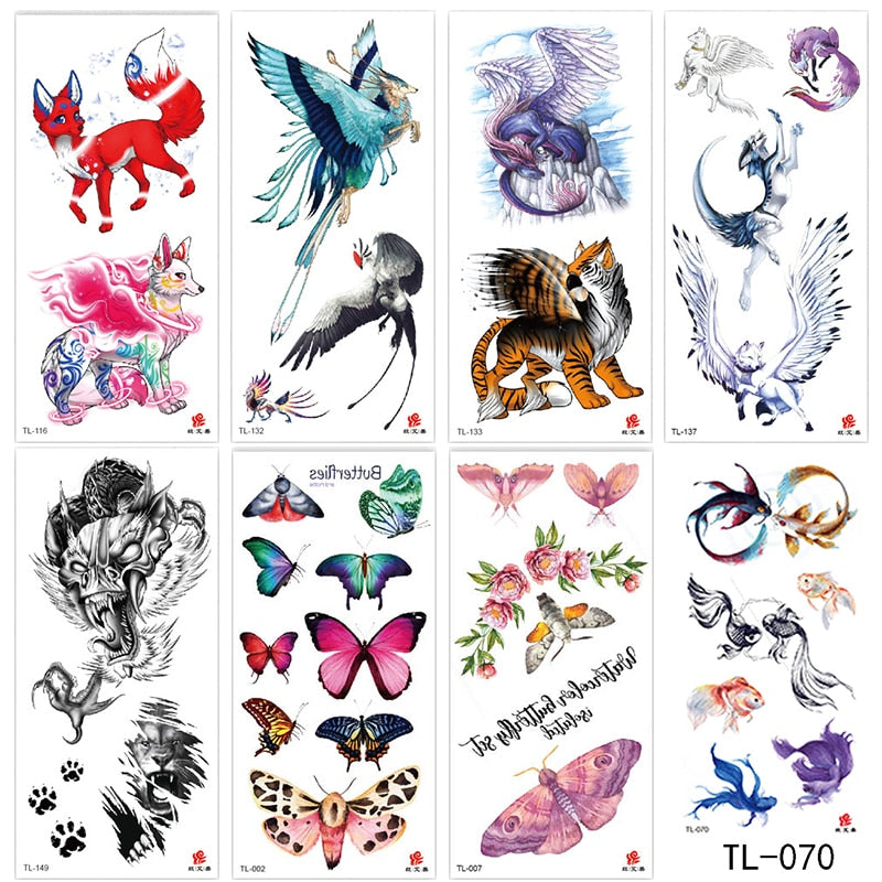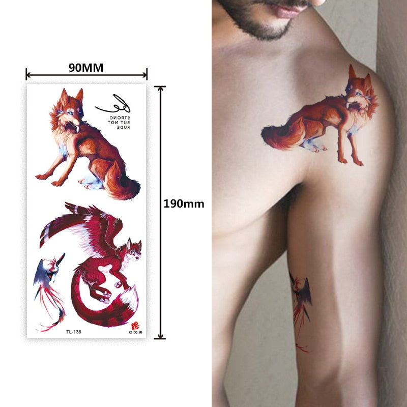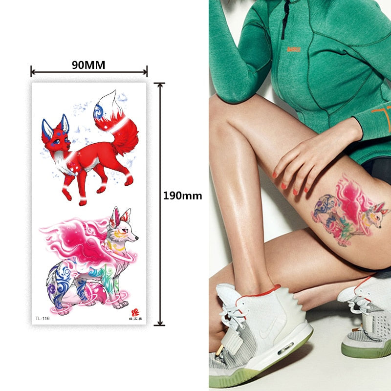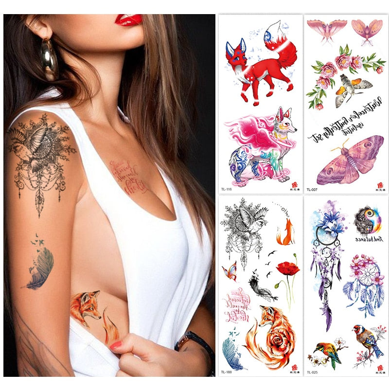 Animal and plant totem flower butterfly bird fox body arm waterproof men and women healthy natural temporary tattoo stickers