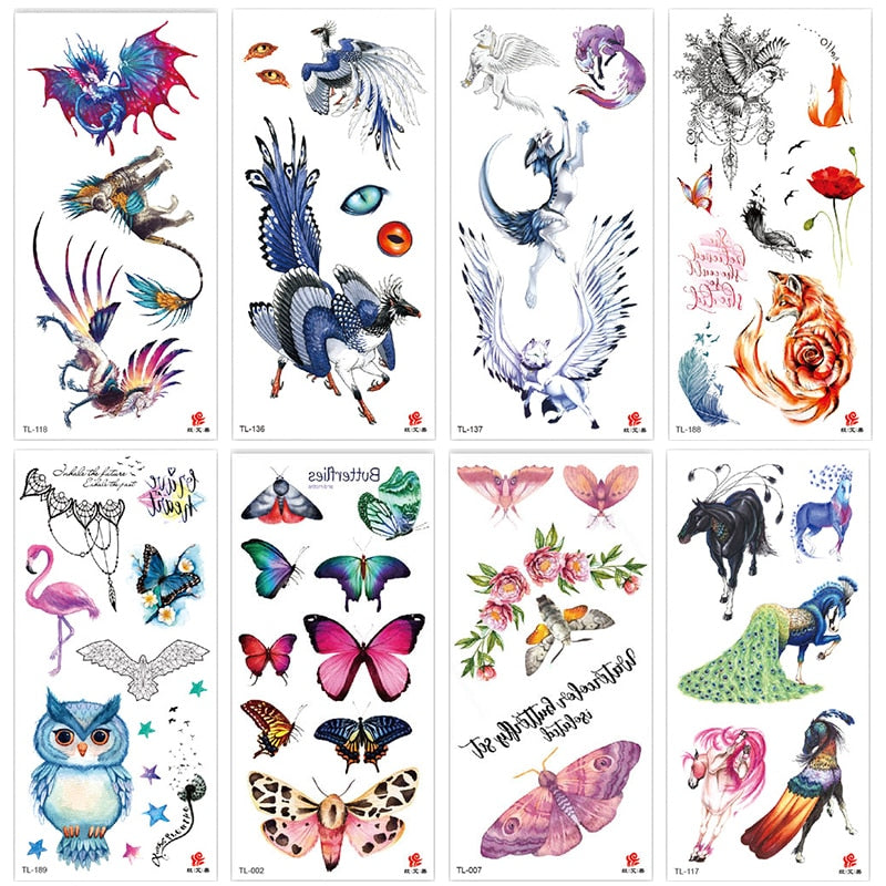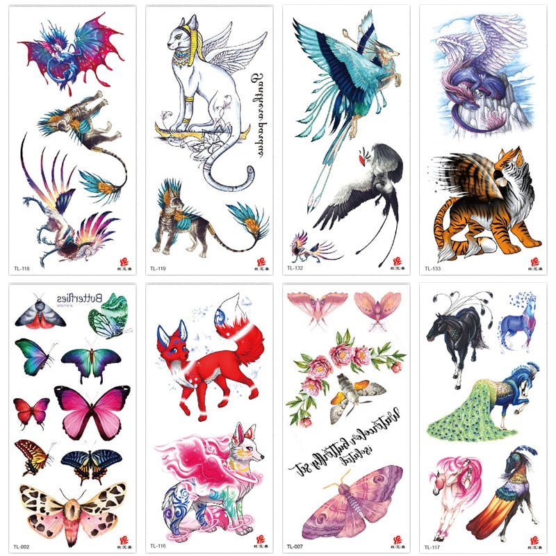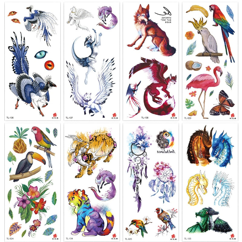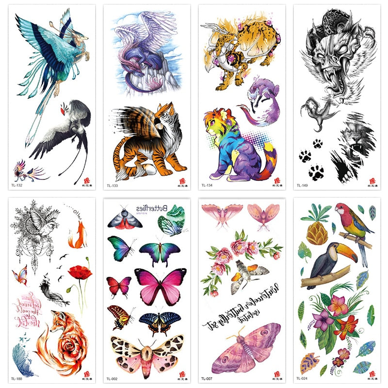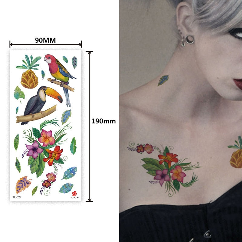 Animal and plant totem flower butterfly bird fox body arm waterproof men and women healthy natural temporary tattoo stickers