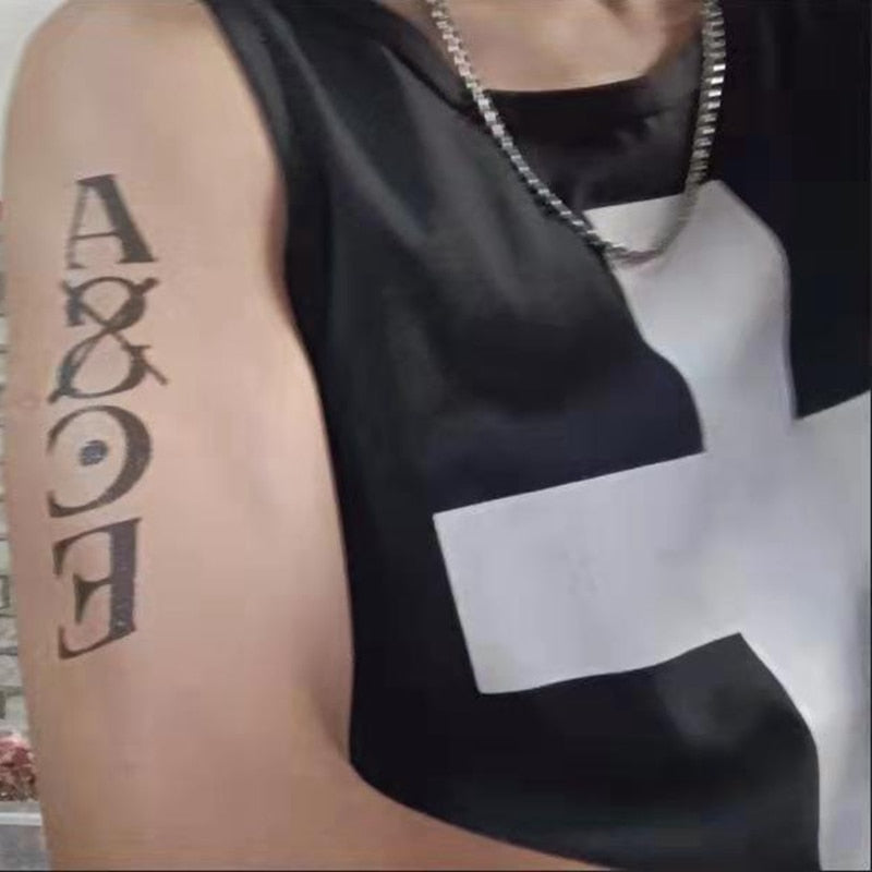 Anime Fire Fist English Tattoo Sticker Men and Women Arm Waterproof Cool Letter Art Fake Tattoo Finger Hand Back Tattoo Sticker