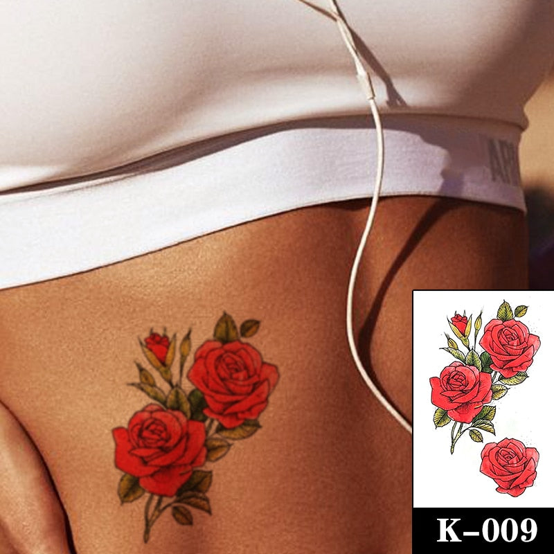 Beautiful Rose Flowers Body Art Neck Abdomen Waterproof Fake Tattoo Sexy for Woman Men Flash Temporary Small Size Tattoo Sticker