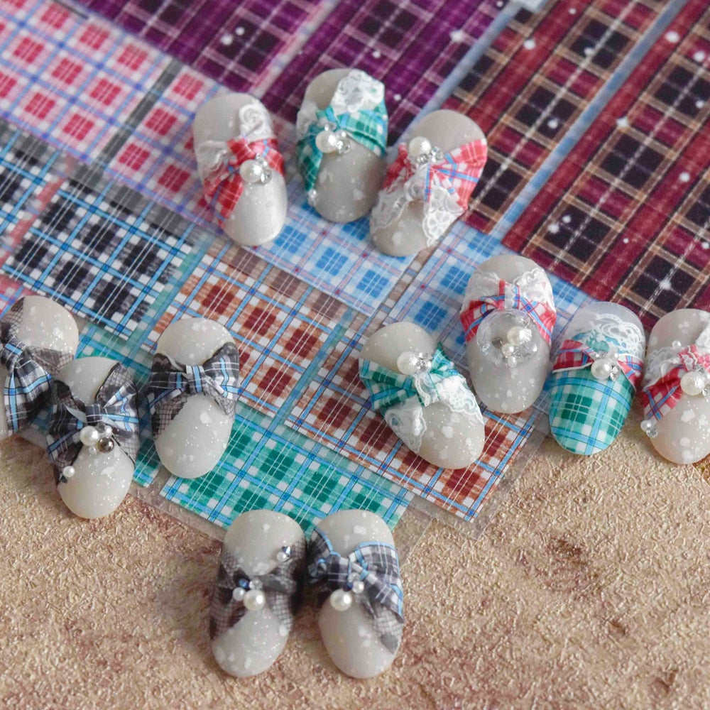 Beautizon 2021 New 3D Engraved Nail Stickers Checked pattern high quality Sticker Empaistic Butterfly Sticker
