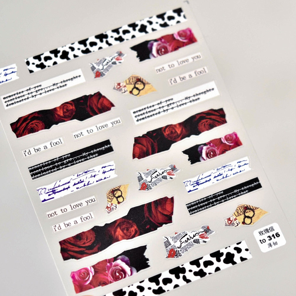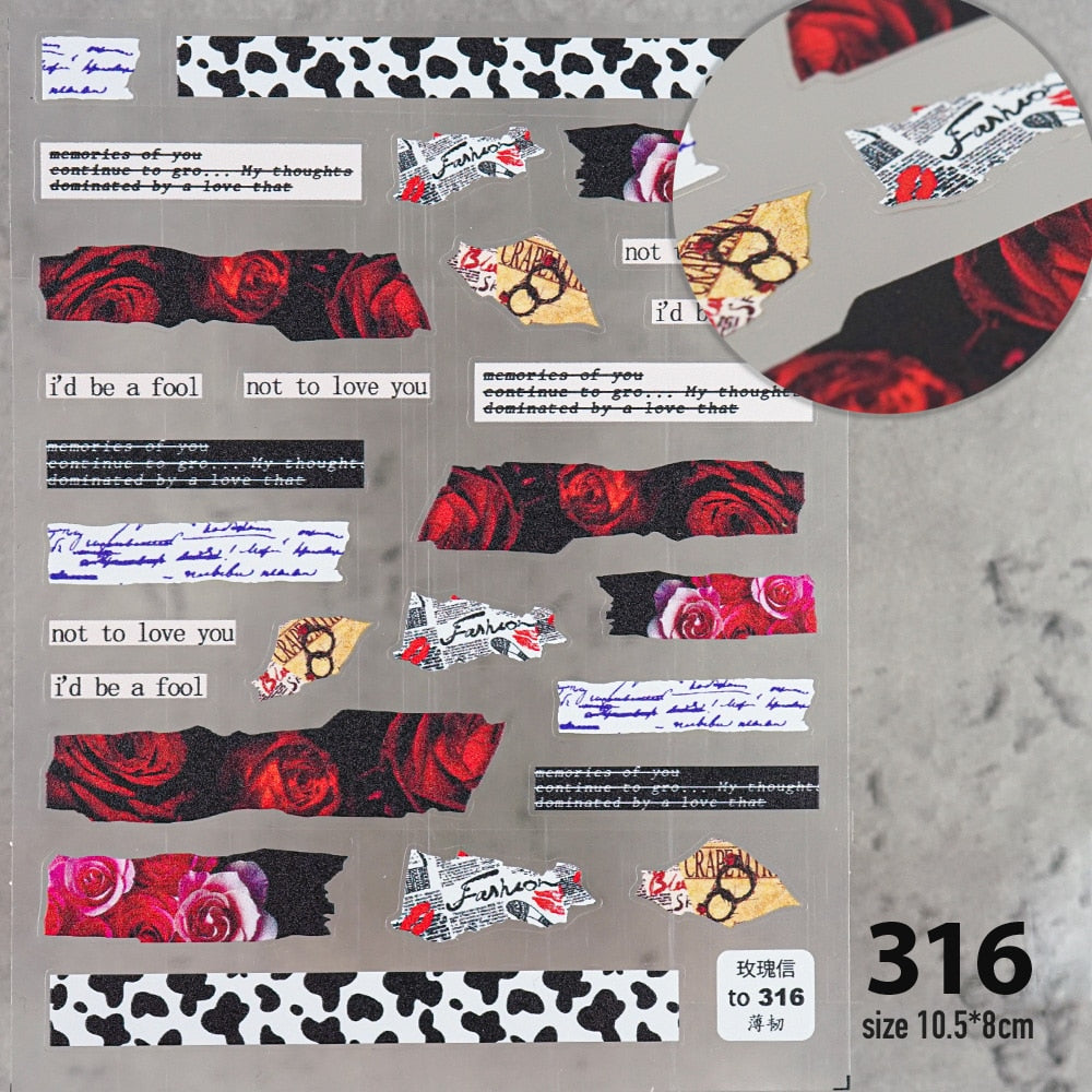 [Beautizon] 2021 New 3D Engraved Nail Stickers Rose flowers Paper texture pattern high quality Empaistic Butterfly Sticker