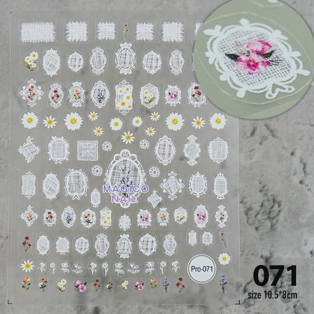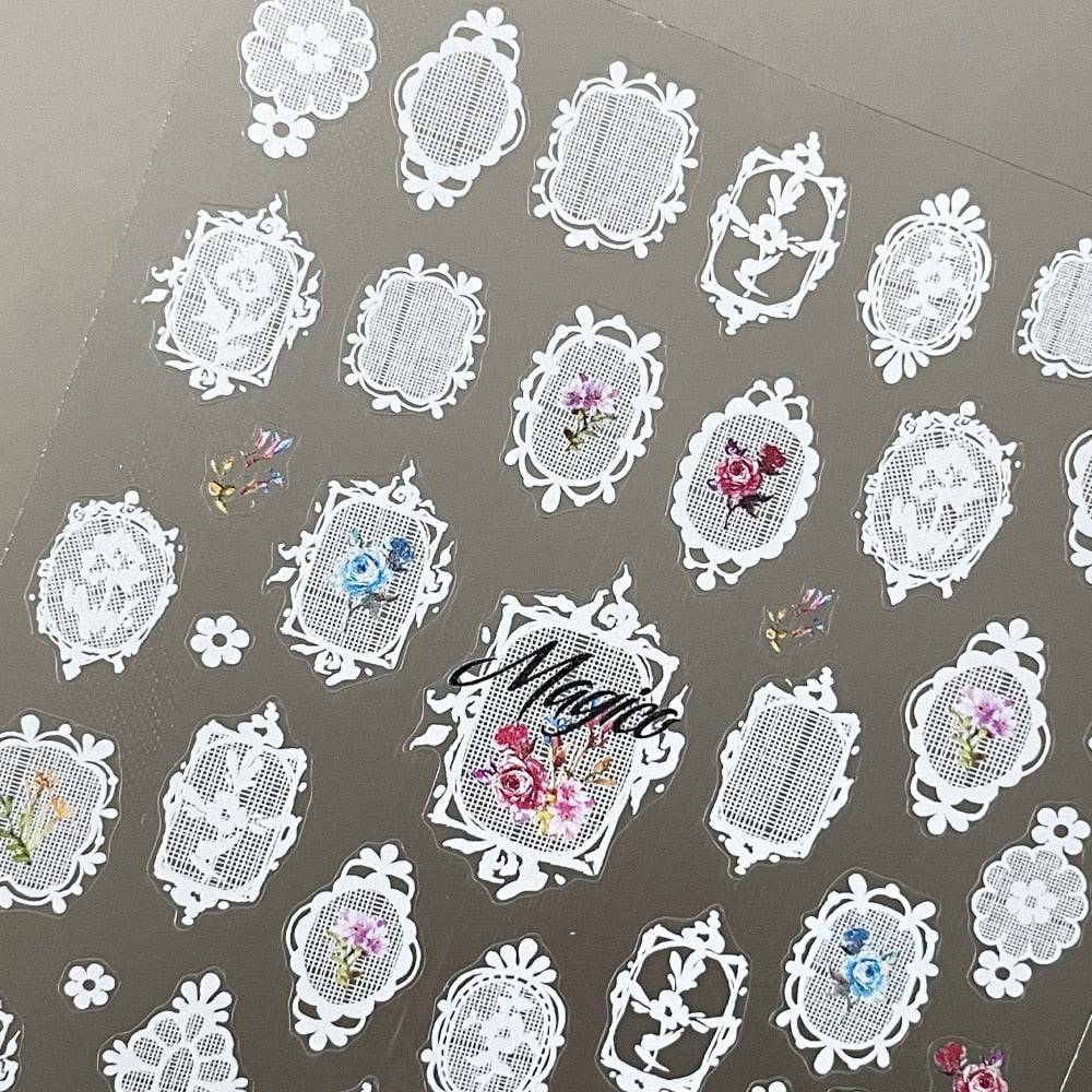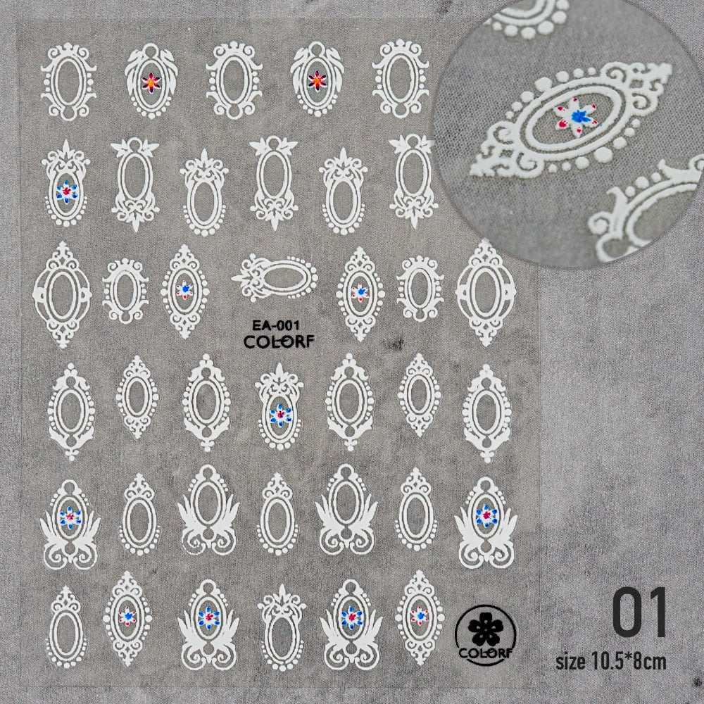 [Beautizon] 3D Engraved Nail Art Stickers Baroque Design Frame style white Leaf Flower high quality Sticker Empaistic Nail