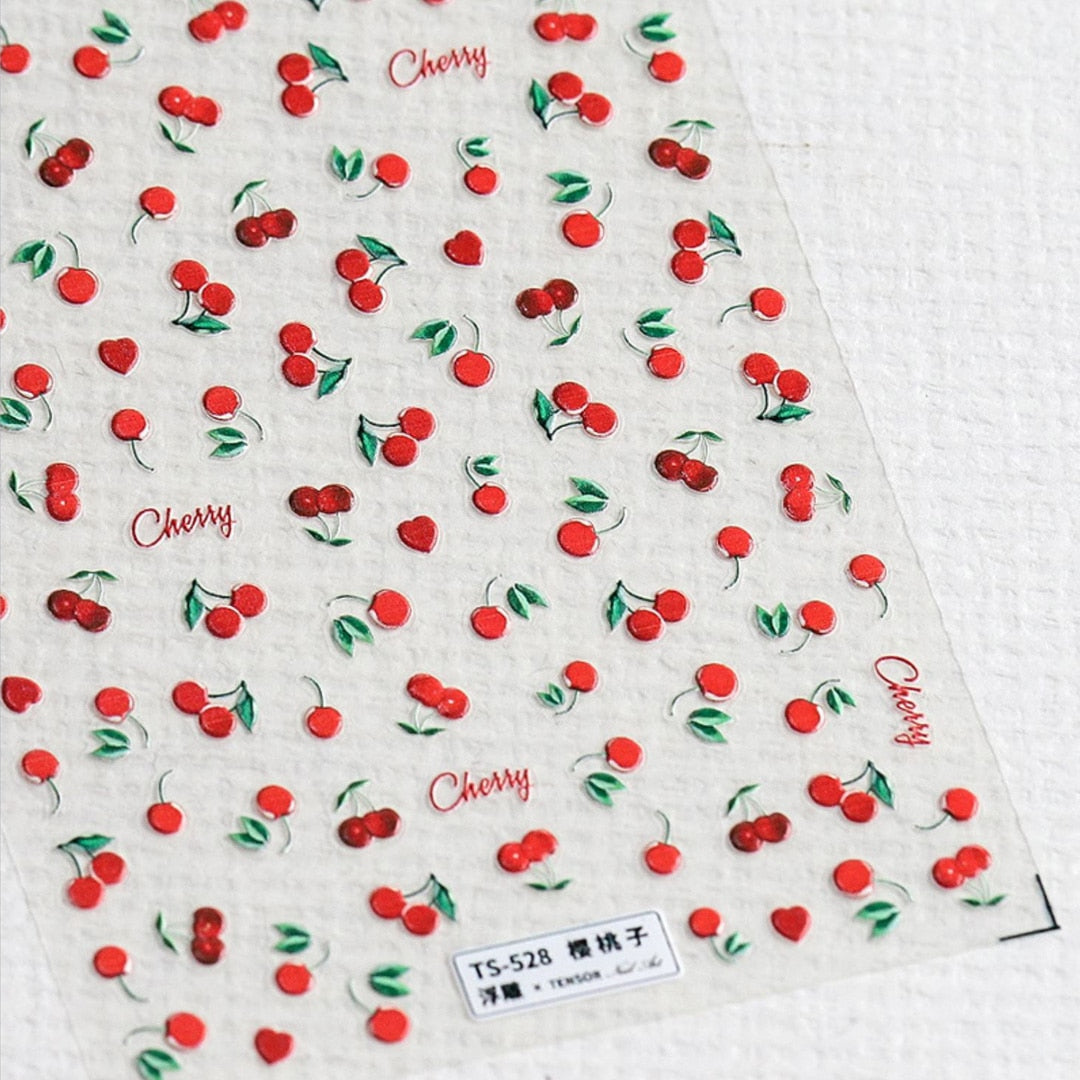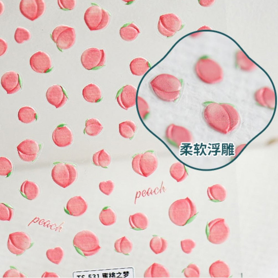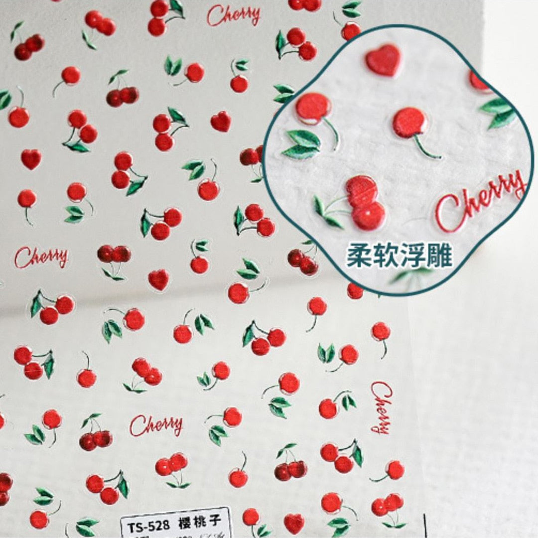 Beautizon Cherry Peach Fruit Cute Image Quality 3D Engraved Nail Stickers Nail Art Decorations Nail Decals Design