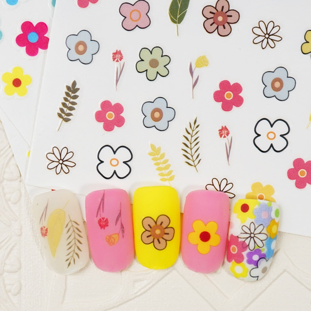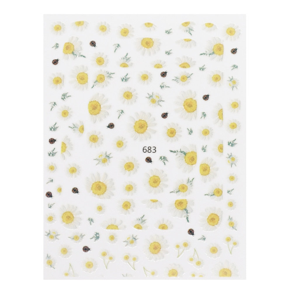 Beautizon Cute Image Flowers Leaves Cactus Nail Sticker 3D Engraved Nail Art Decorations Nail Decals Design