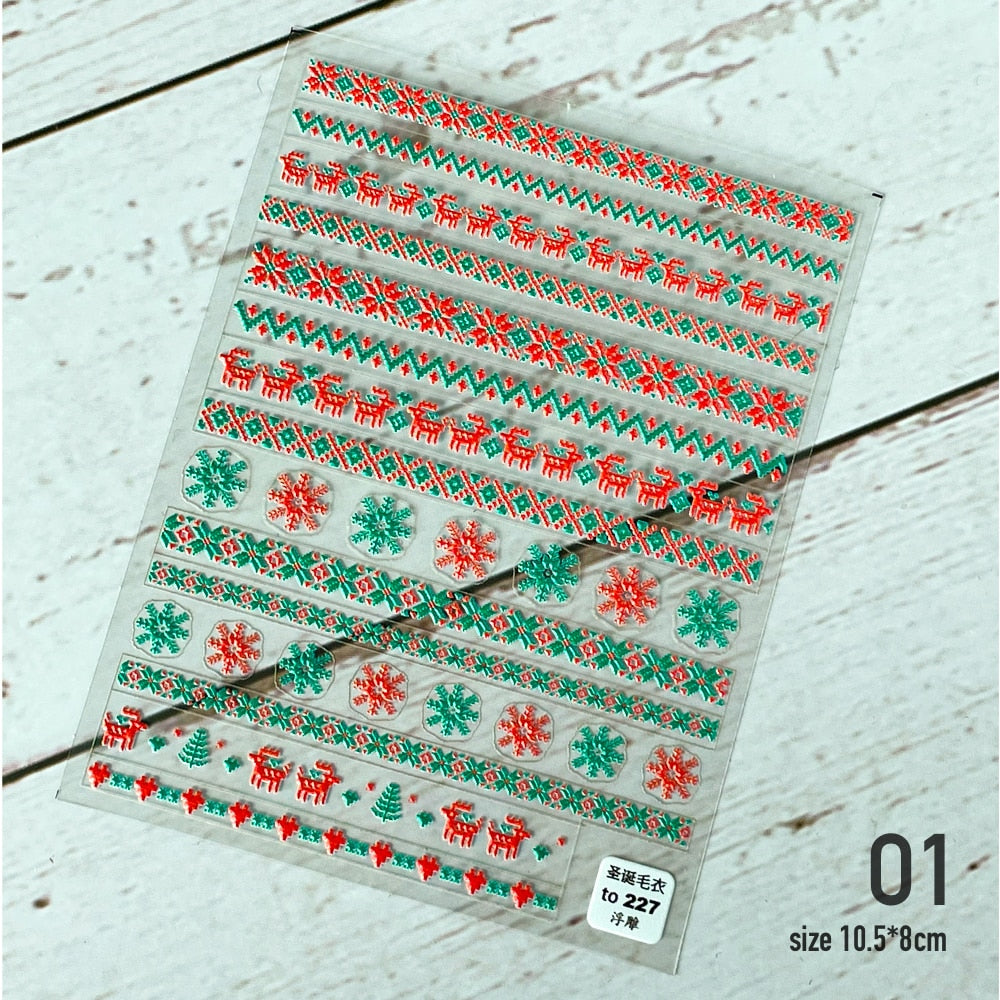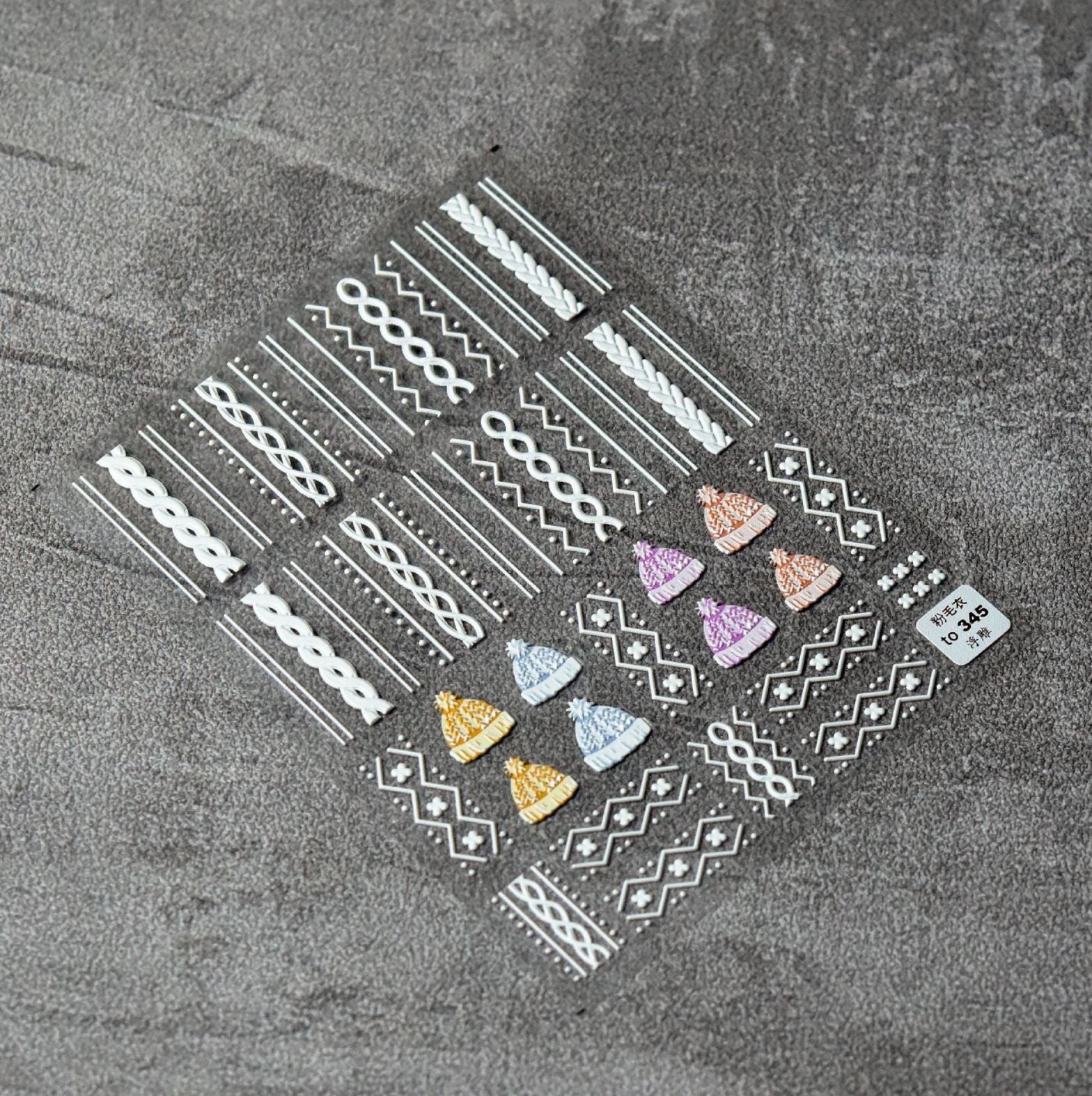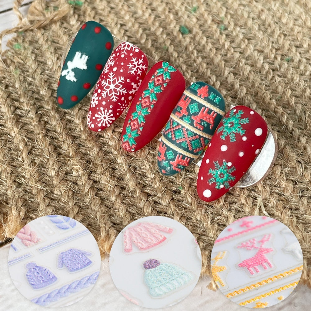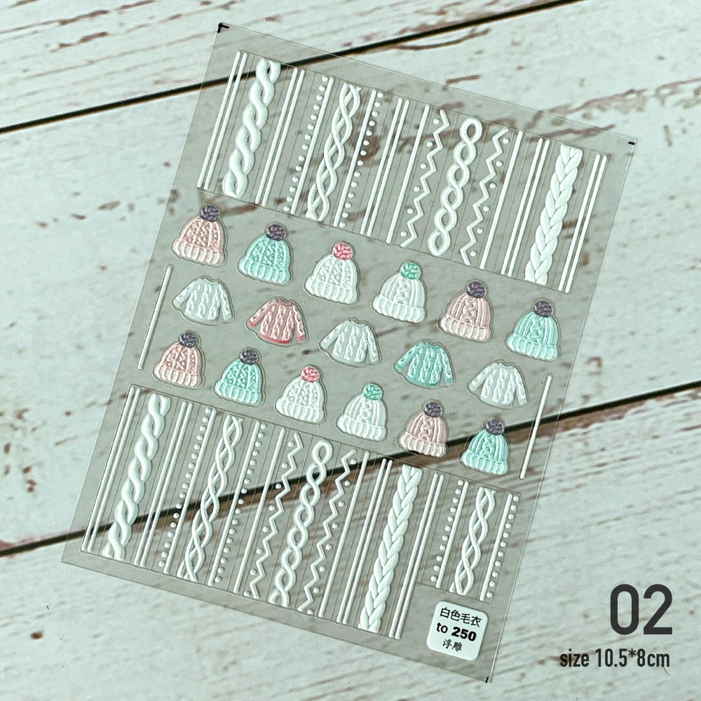 Beautizon Cute Sweater High Quality 5D Acrylic Engraved Nail Sticker Sweater Snowflake Floral Patterns Nail Water Decal