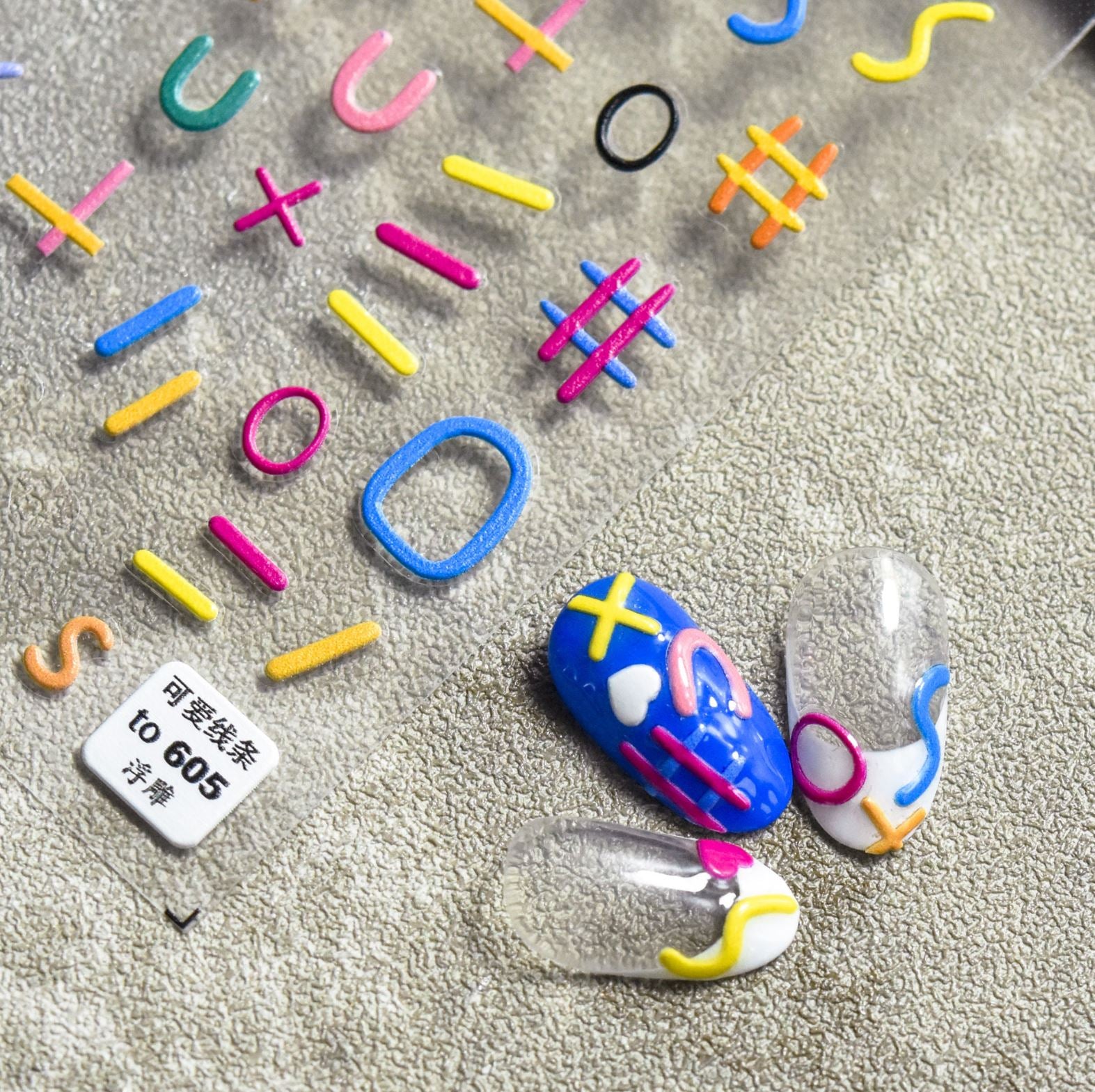 Beautizon Heart + - Shape Colorful Typography High Quality 5D Engraved Nail Stickers Nail Art Decorations Nail Decals Design
