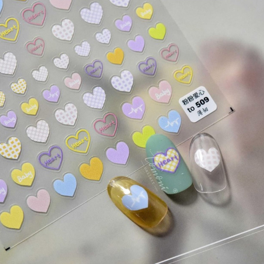 Beautizon Pink heart 3D Engraved Nail Art Sticker High Quality Nail Art Decorations Nail Decals Design