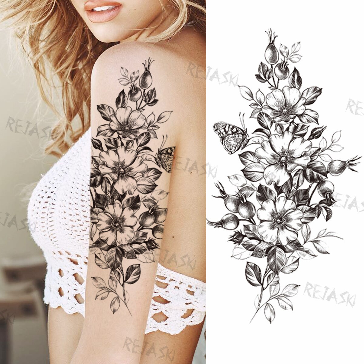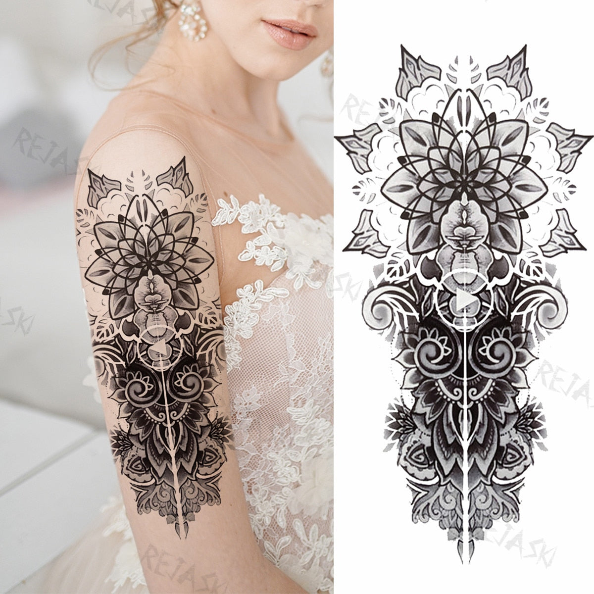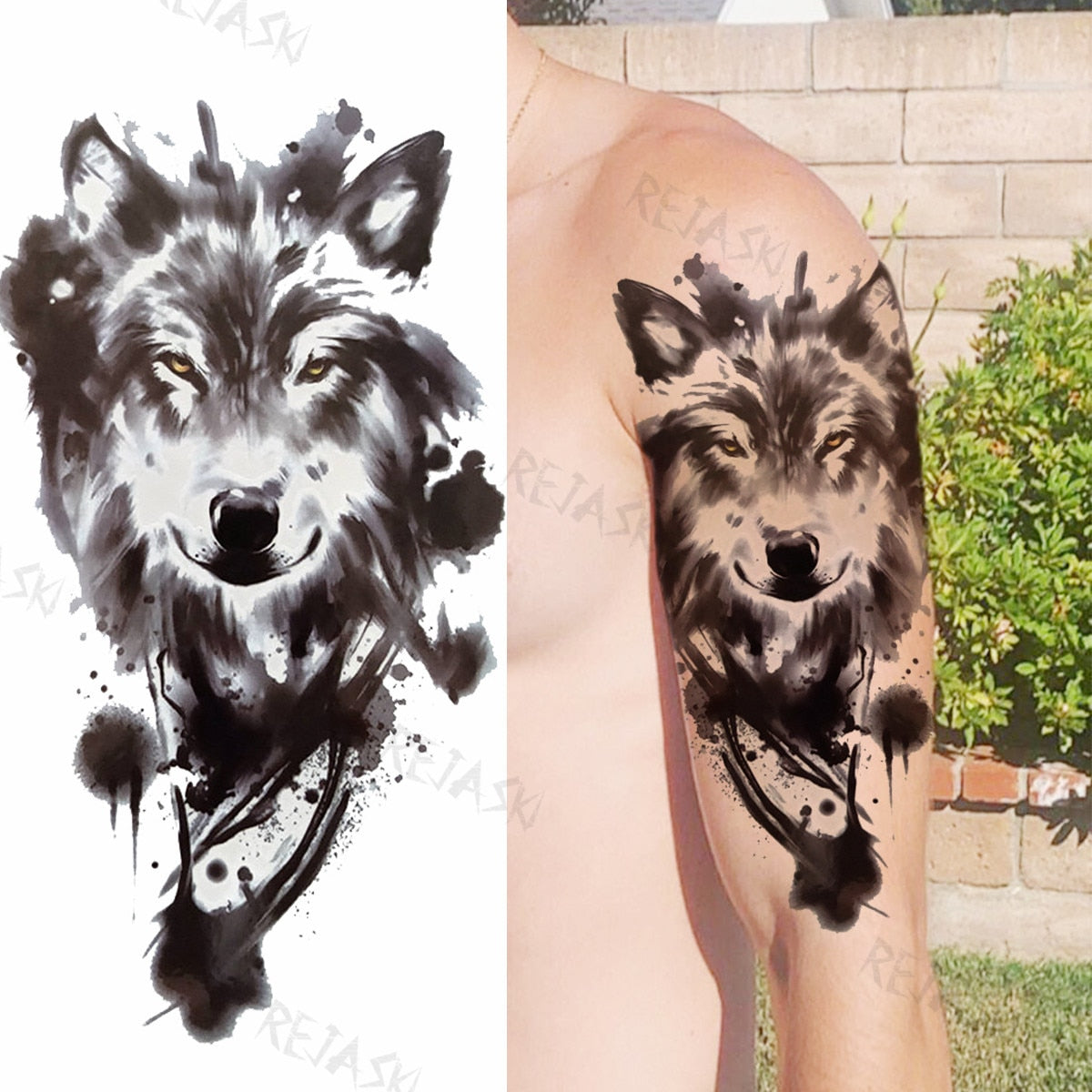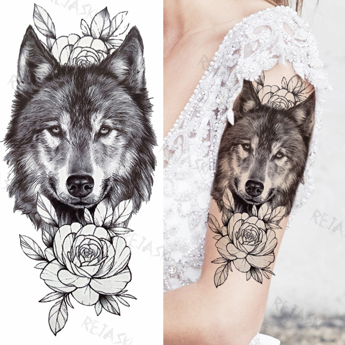Big Compass Lion Temporary Tattoos For Men Foreearm Women Adults Wolf Tiger Skull Rose Owl Eye Fake Tattoo Sticker Tatoos