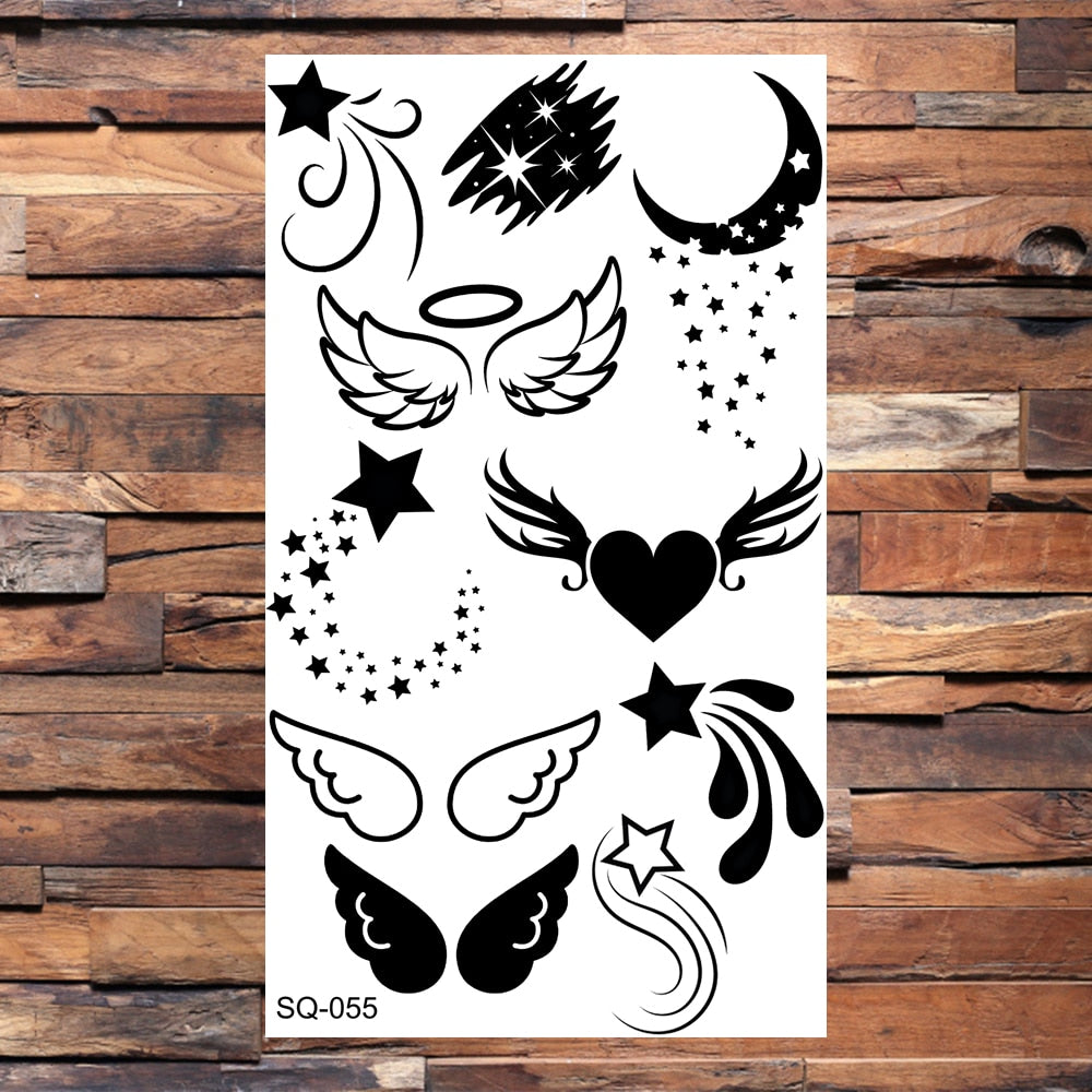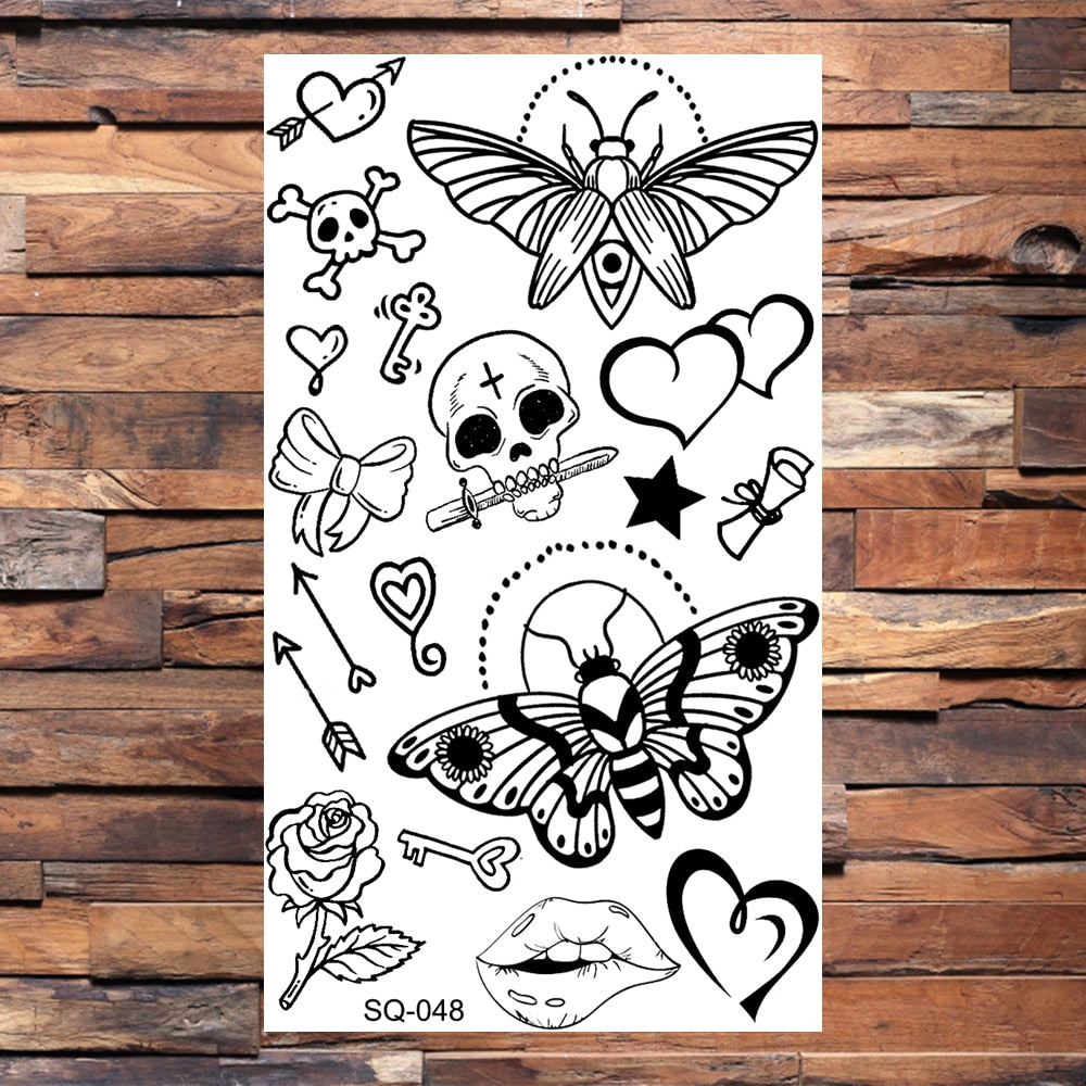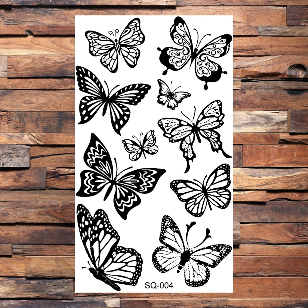 Black Butterfly Temporary Tattoos For Women Girls Realistic Eye Halloween Crown Fake Tattoo Sticker Sexy Body Arm Tatoos DIY