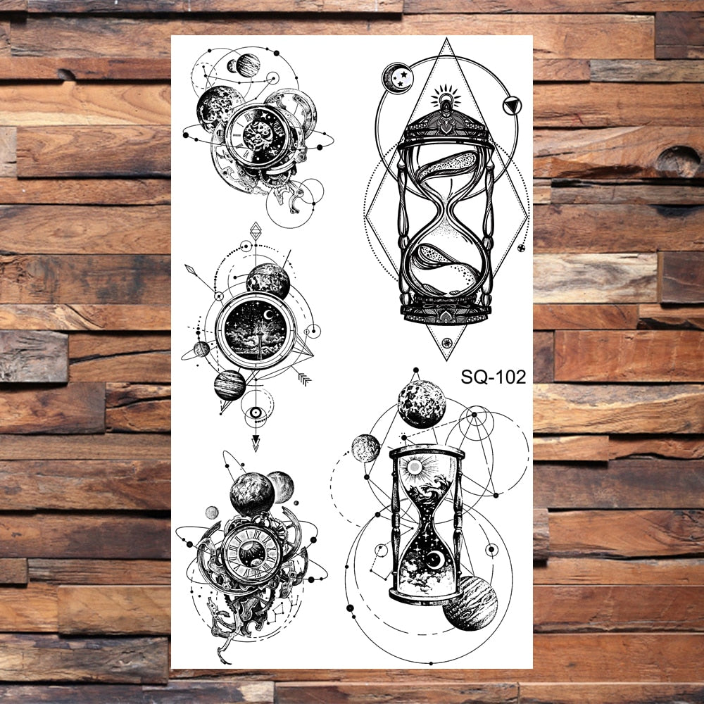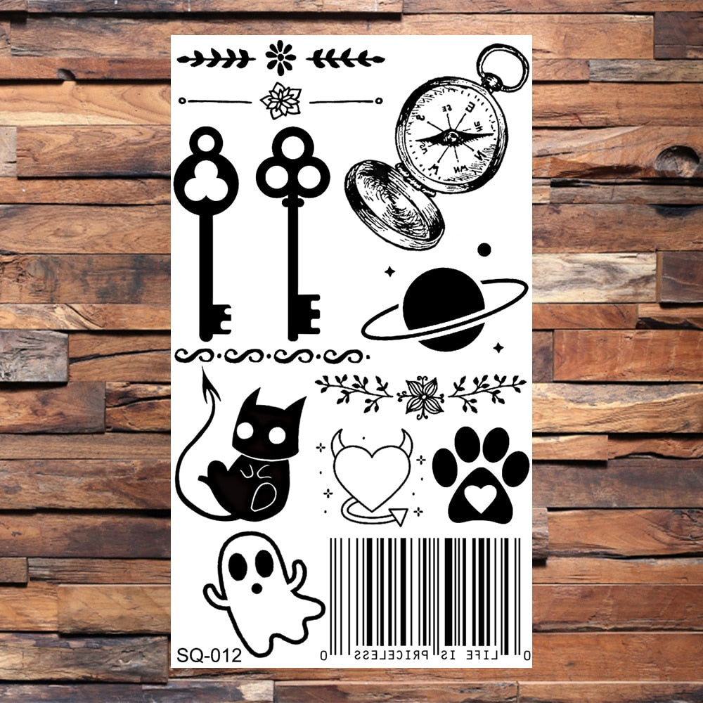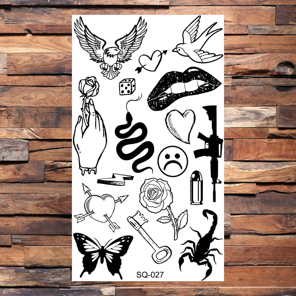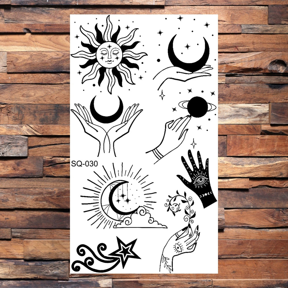 Black Butterfly Temporary Tattoos For Women Girls Realistic Eye Halloween Crown Fake Tattoo Sticker Sexy Body Arm Tatoos DIY