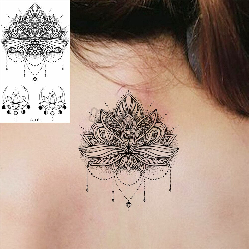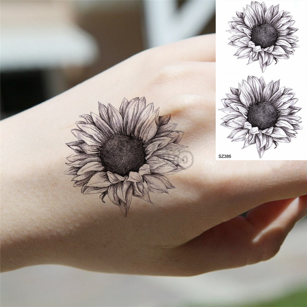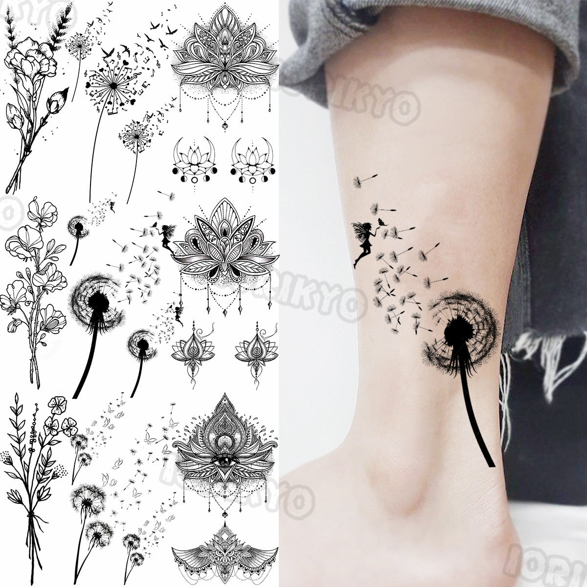 Black Dandelion Temporary Tattoos For Women Girls Realistic Henna Thorn Daisy Fake Tattoo Sticker Waterproof Leg Body Tatoos