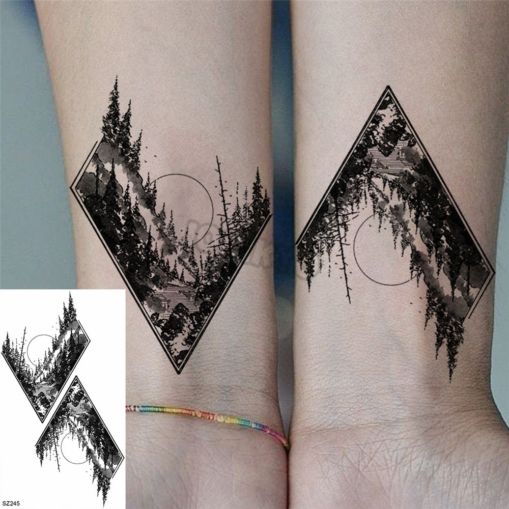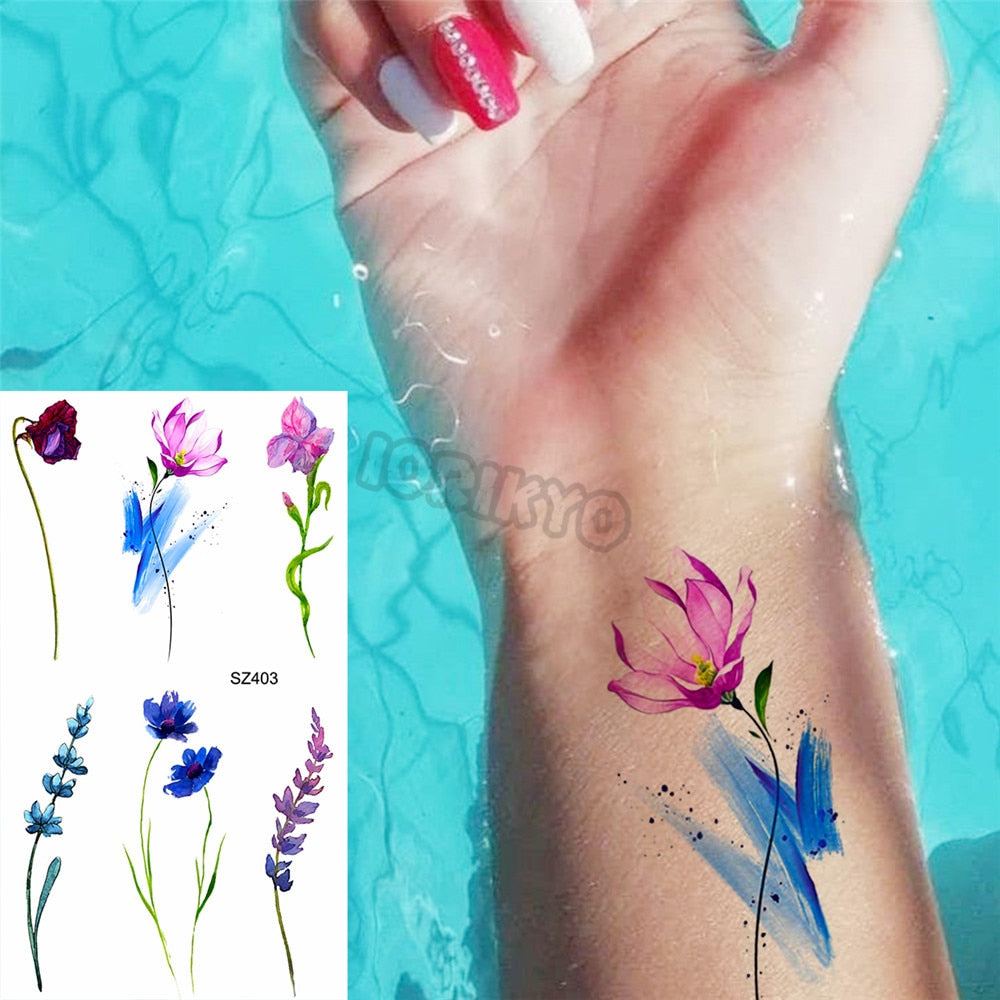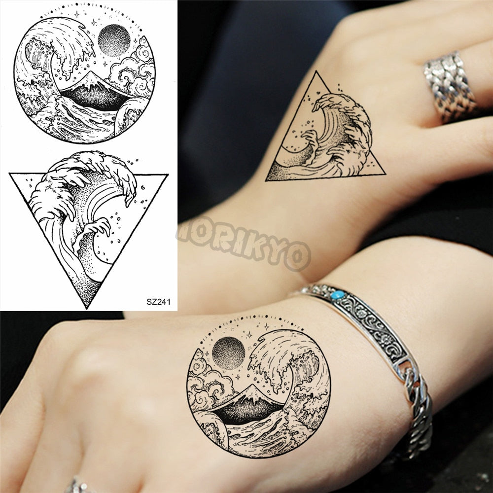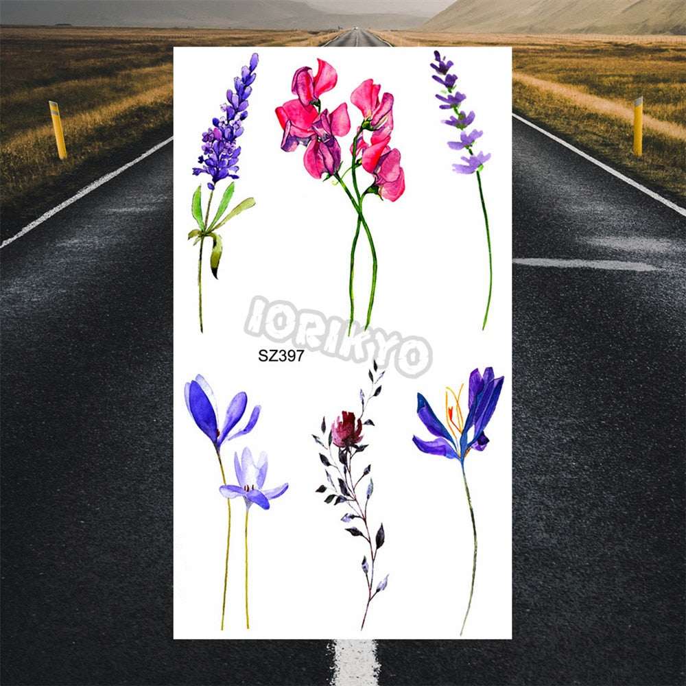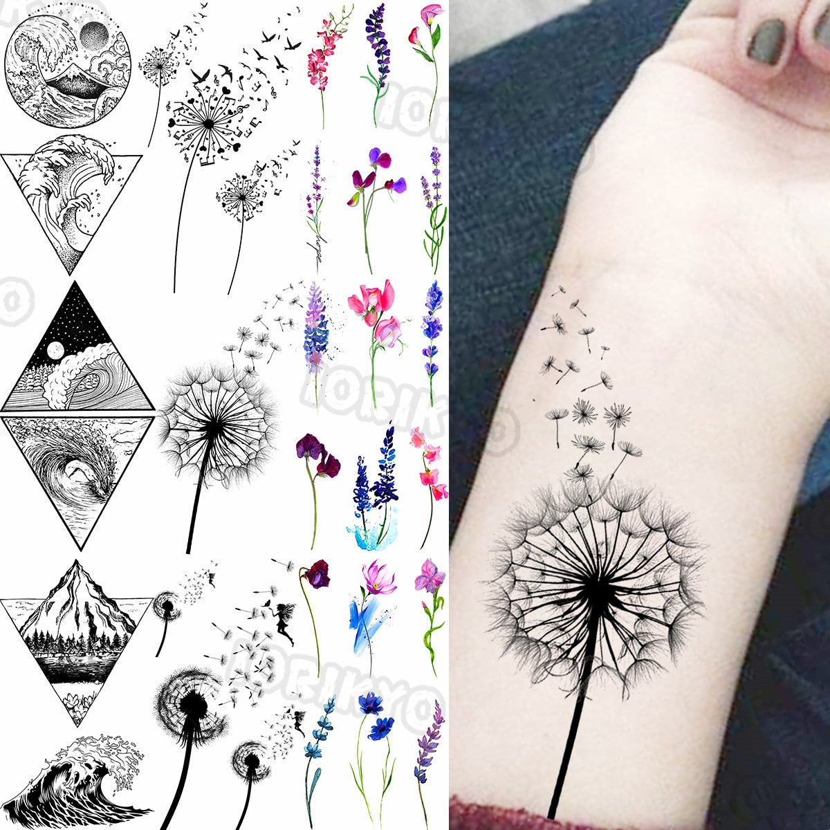Black Dandelion With Creative Tattoos For Women Men Realistic Sea Wave Mountain Lavender Fake Tattoo Sticker Arm Leg Tatoos 3D