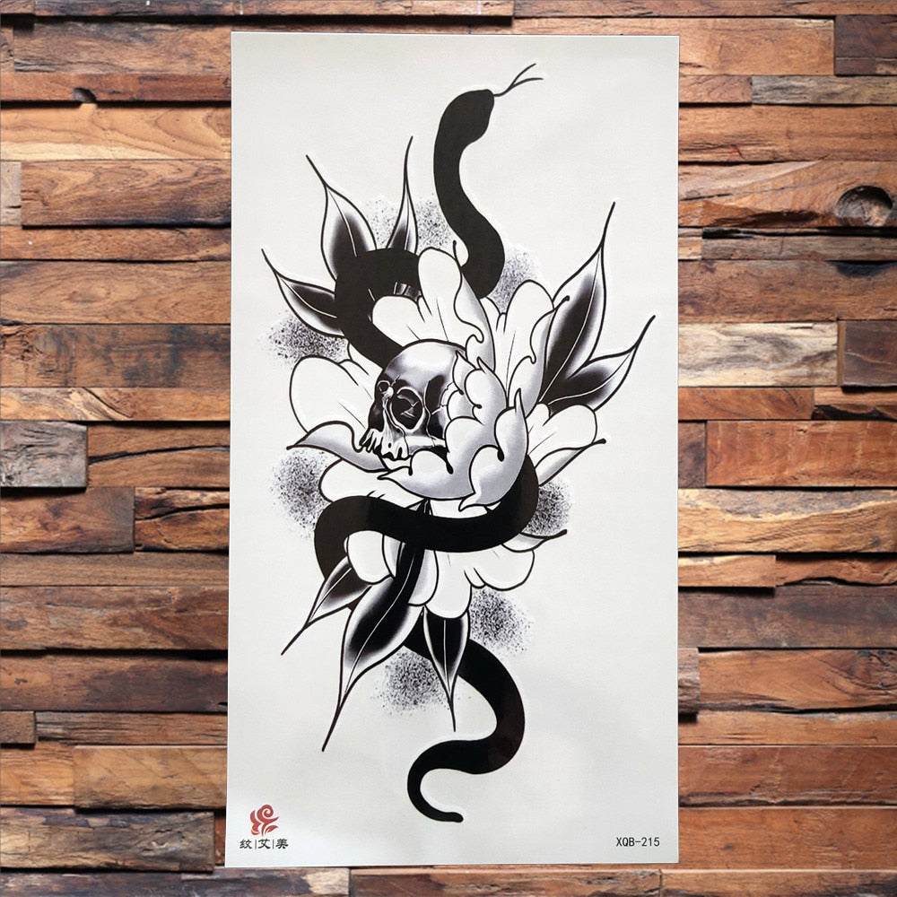 Black Dragon King Temporary Tattoo For Men Women Tree Snake Flower Tattoos Waterproof Unique Sword Flash Fake Tatoos Armbands
