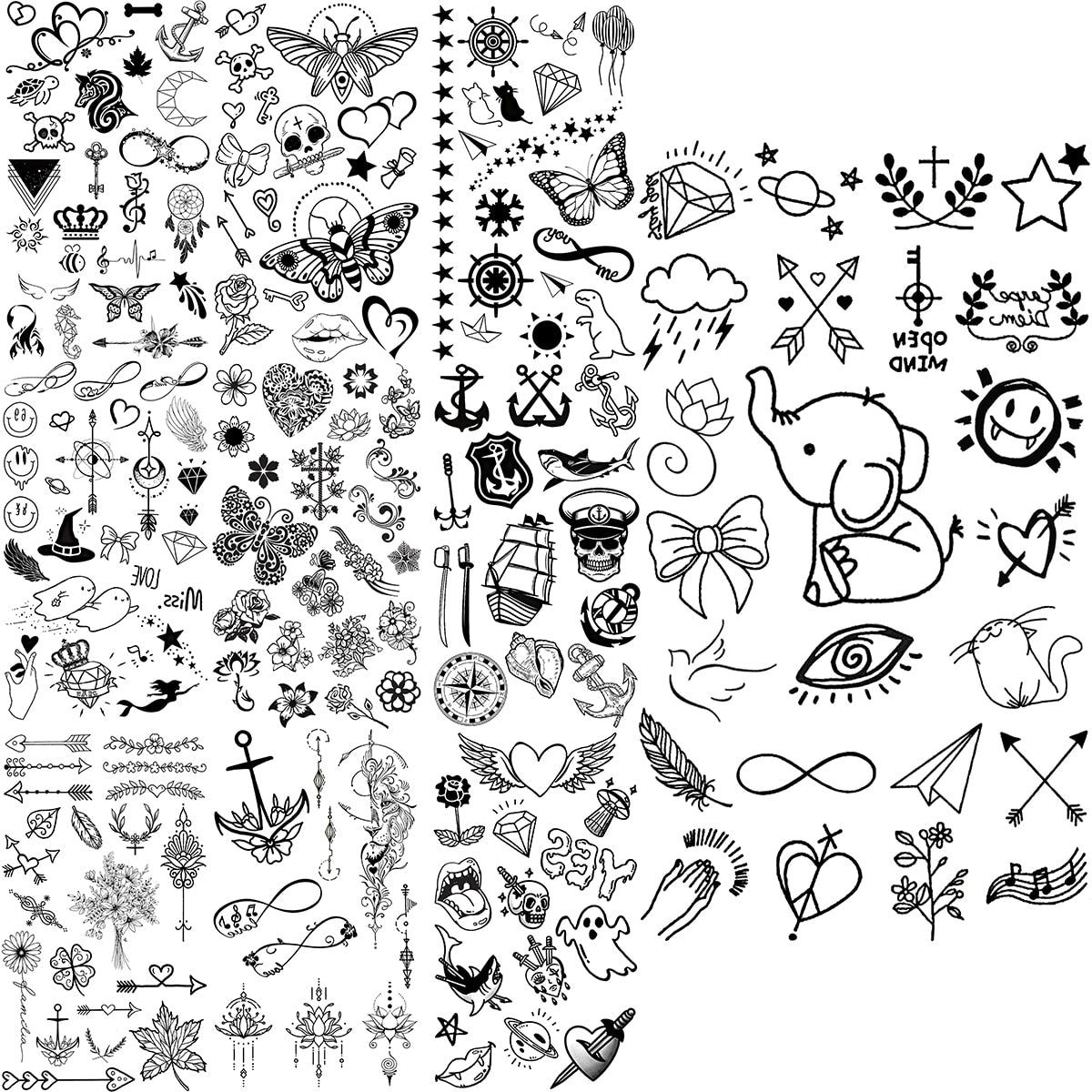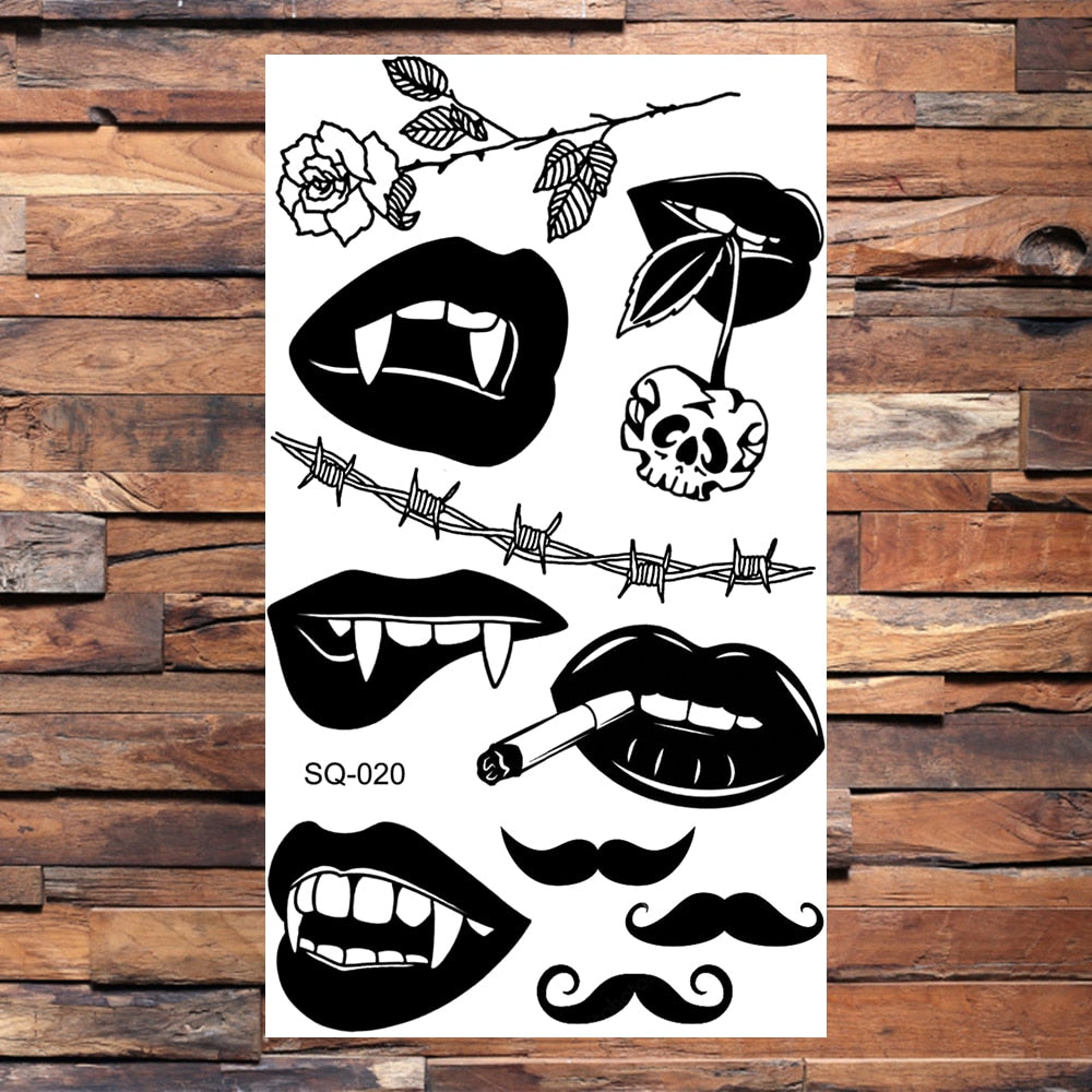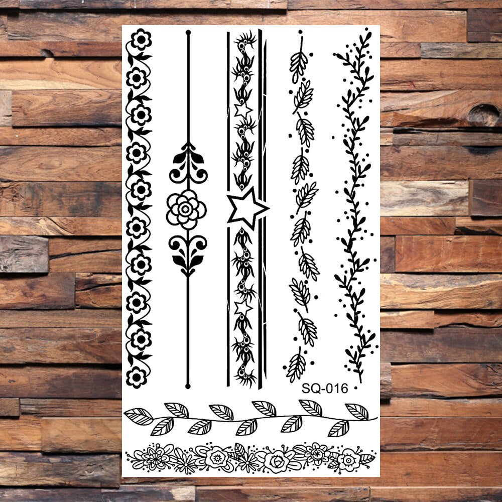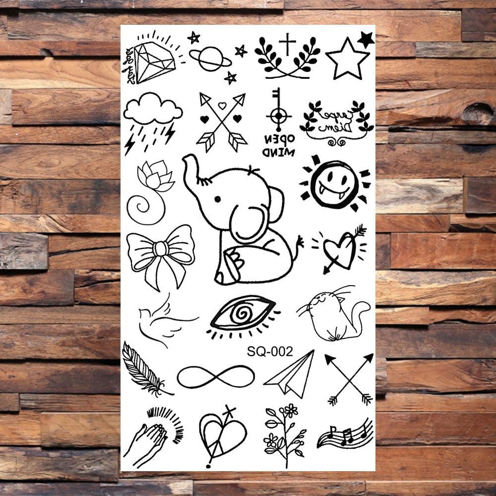 Black Elephant Cartoon Diamond Arrow Temporary Tattoos For Children Adults Realistic Pirate Flower Feather Fake Tatoos Sticker