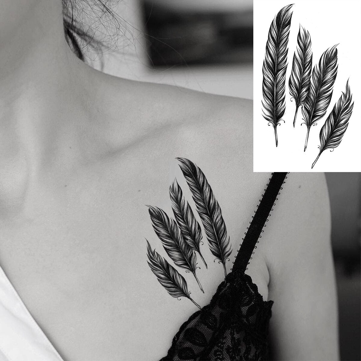 Black Feather Neck Temporary Tattoos For Women Adult Dream Catcher Wings Realistic Fake Tattoo Waterproof Body Art Tatoos Decal
