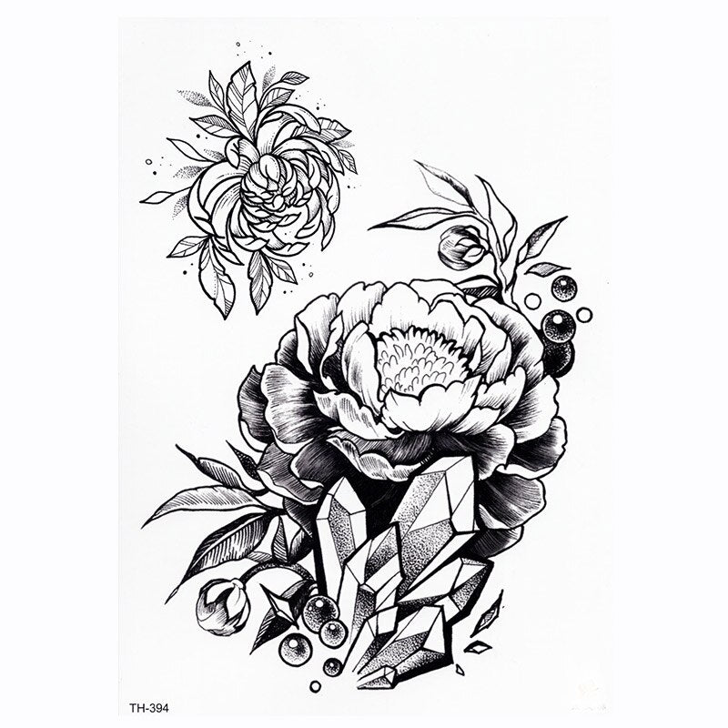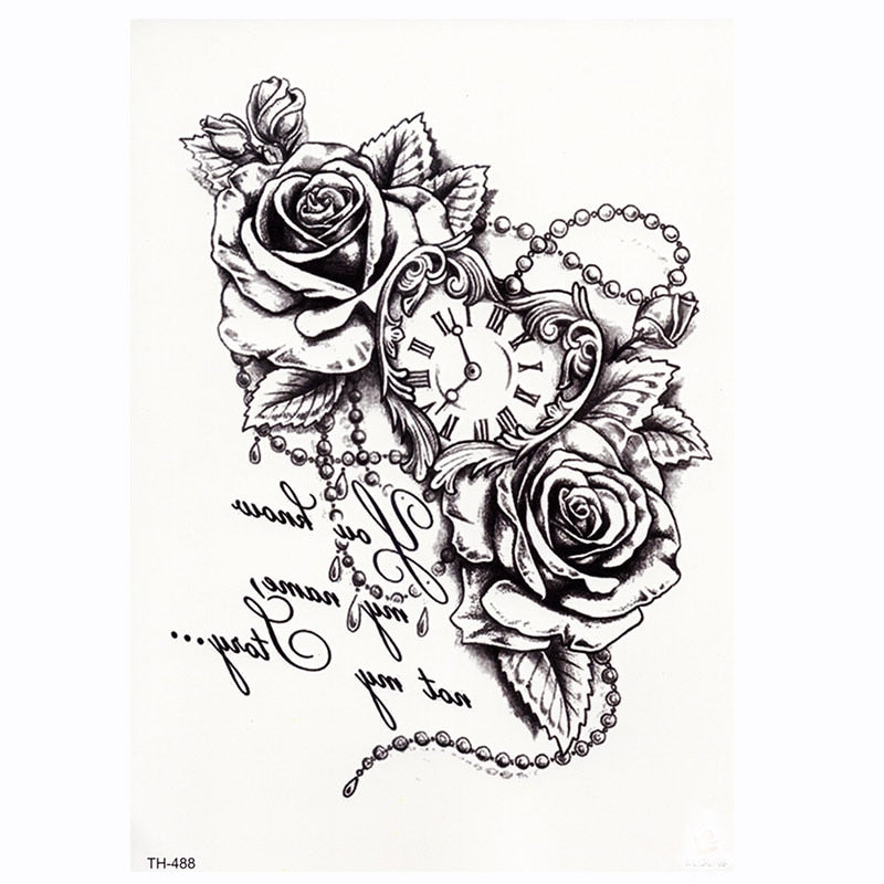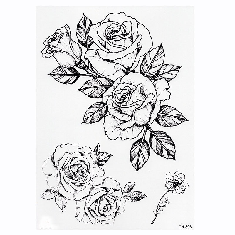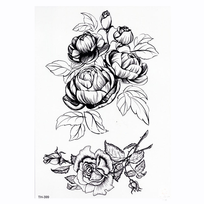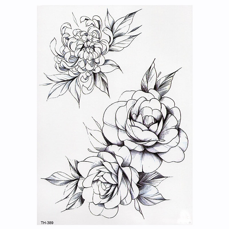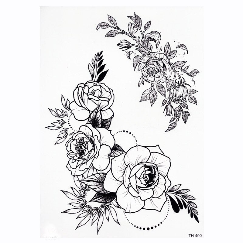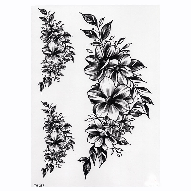 Black Flower Body Art Waterproof Temporary Tatoo Sexy Thigh Arm Tattoos Rose For Woman Flash Tattoo Stickers