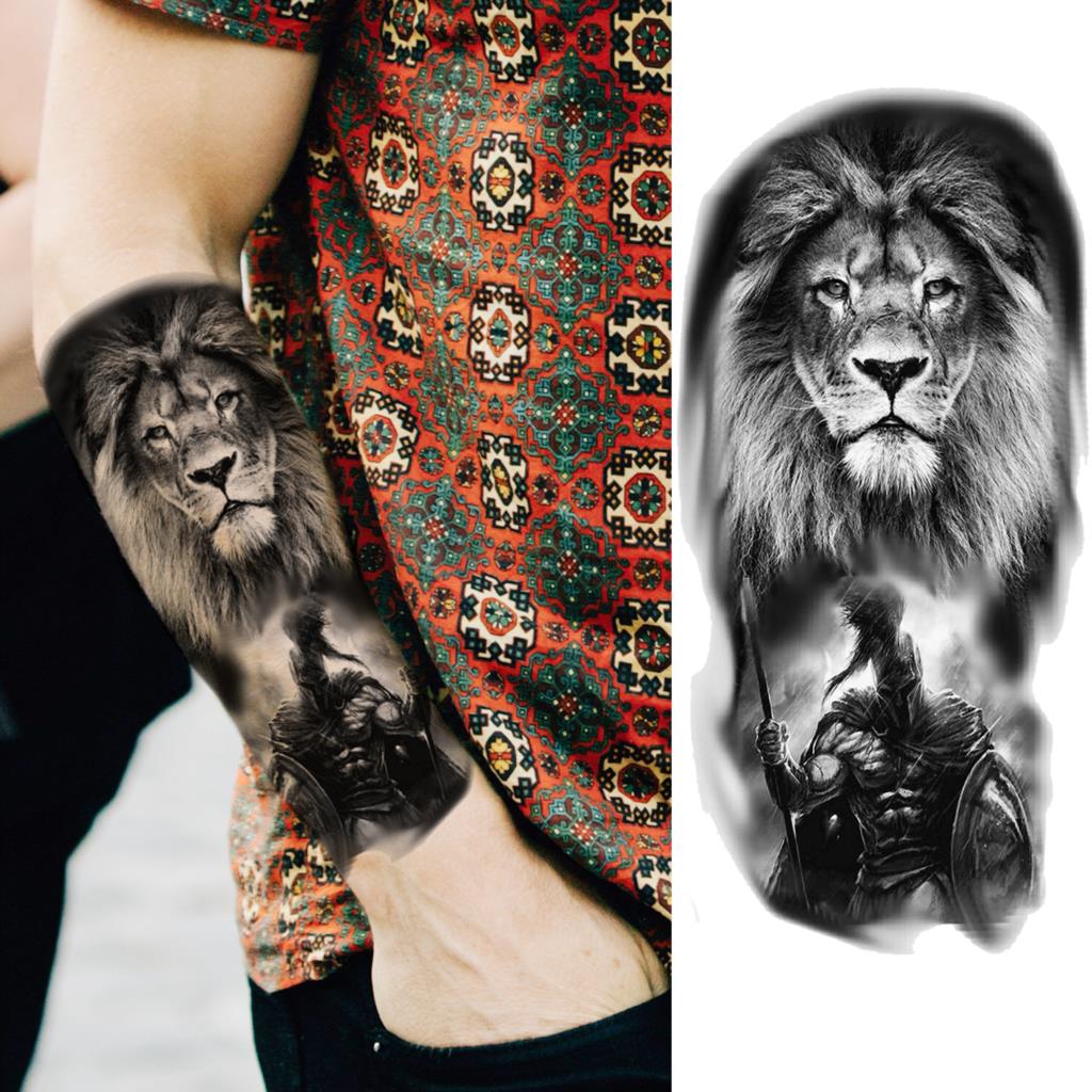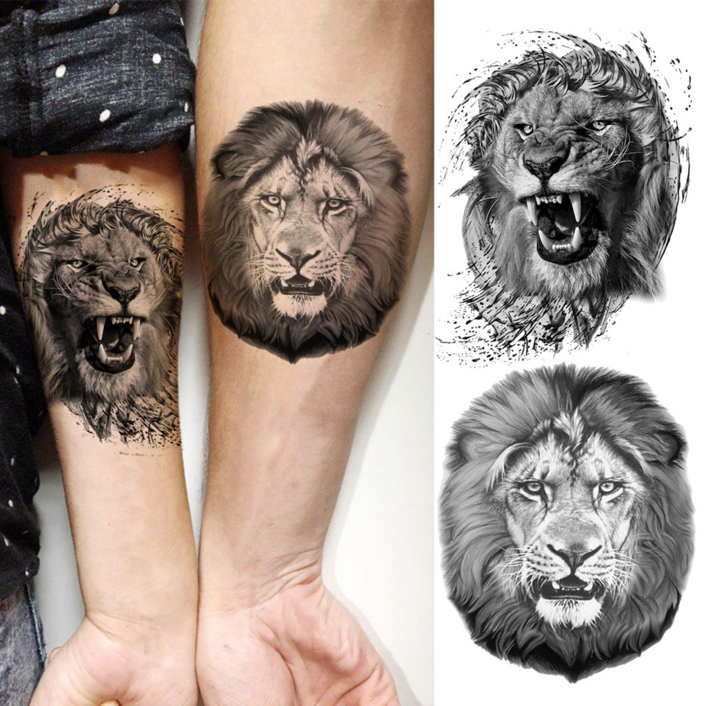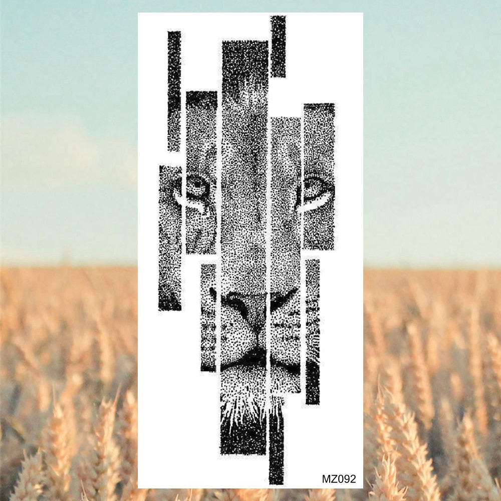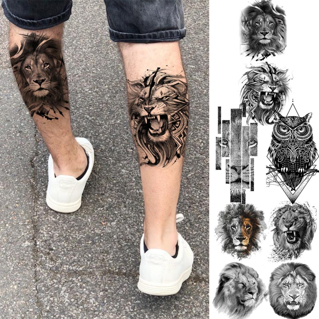 Black Lion Fashion Calf Temporary Tattoos For Women Adult Men Lion Geometric Owl Fake Tattoo Realistic Body Art Decoration Tatoo