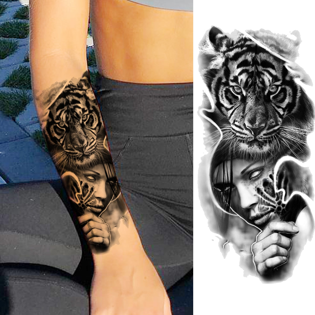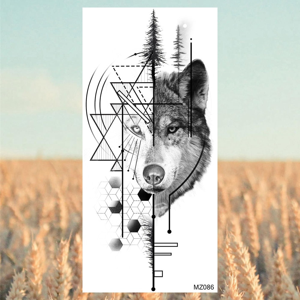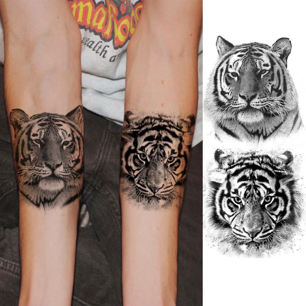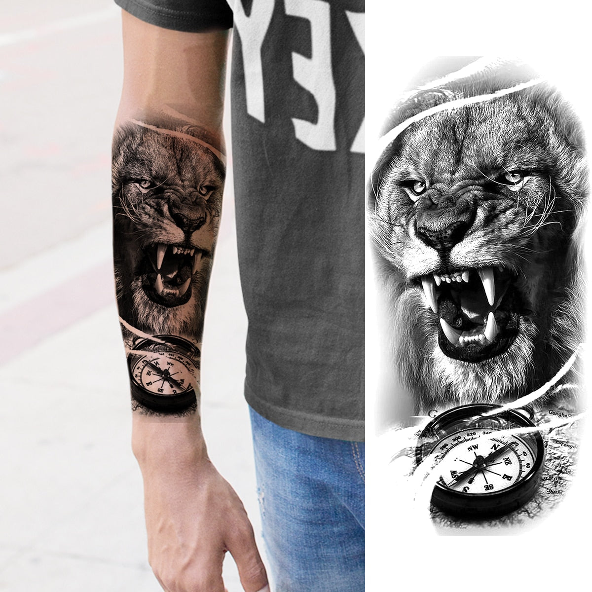 Black Lion Fashion Calf Temporary Tattoos For Women Adult Men Lion Geometric Owl Fake Tattoo Realistic Body Art Decoration Tatoo