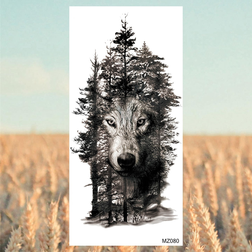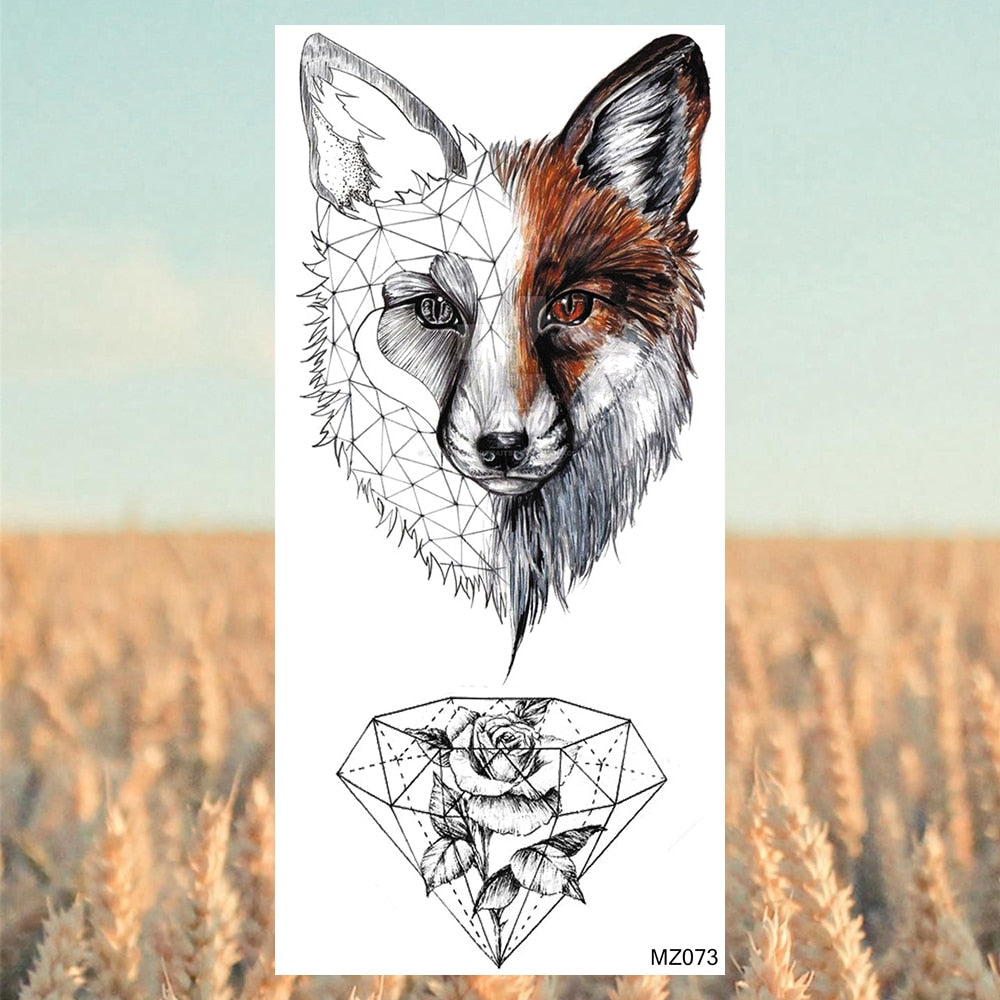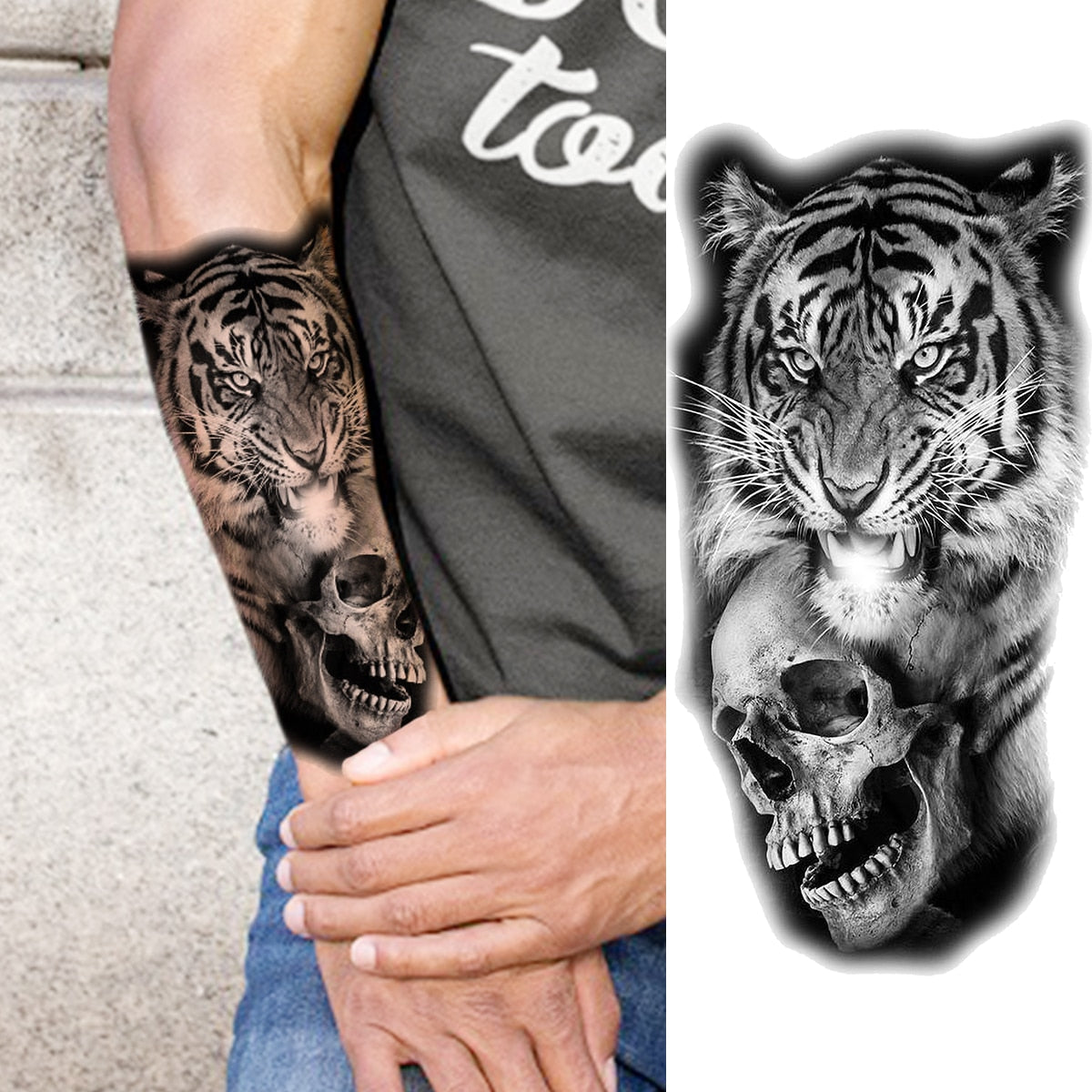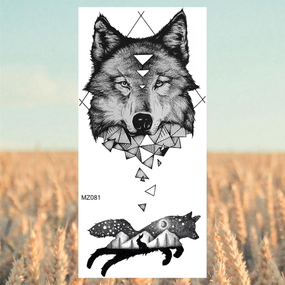Black Lion Fashion Calf Temporary Tattoos For Women Adult Men Lion Geometric Owl Fake Tattoo Realistic Body Art Decoration Tatoo