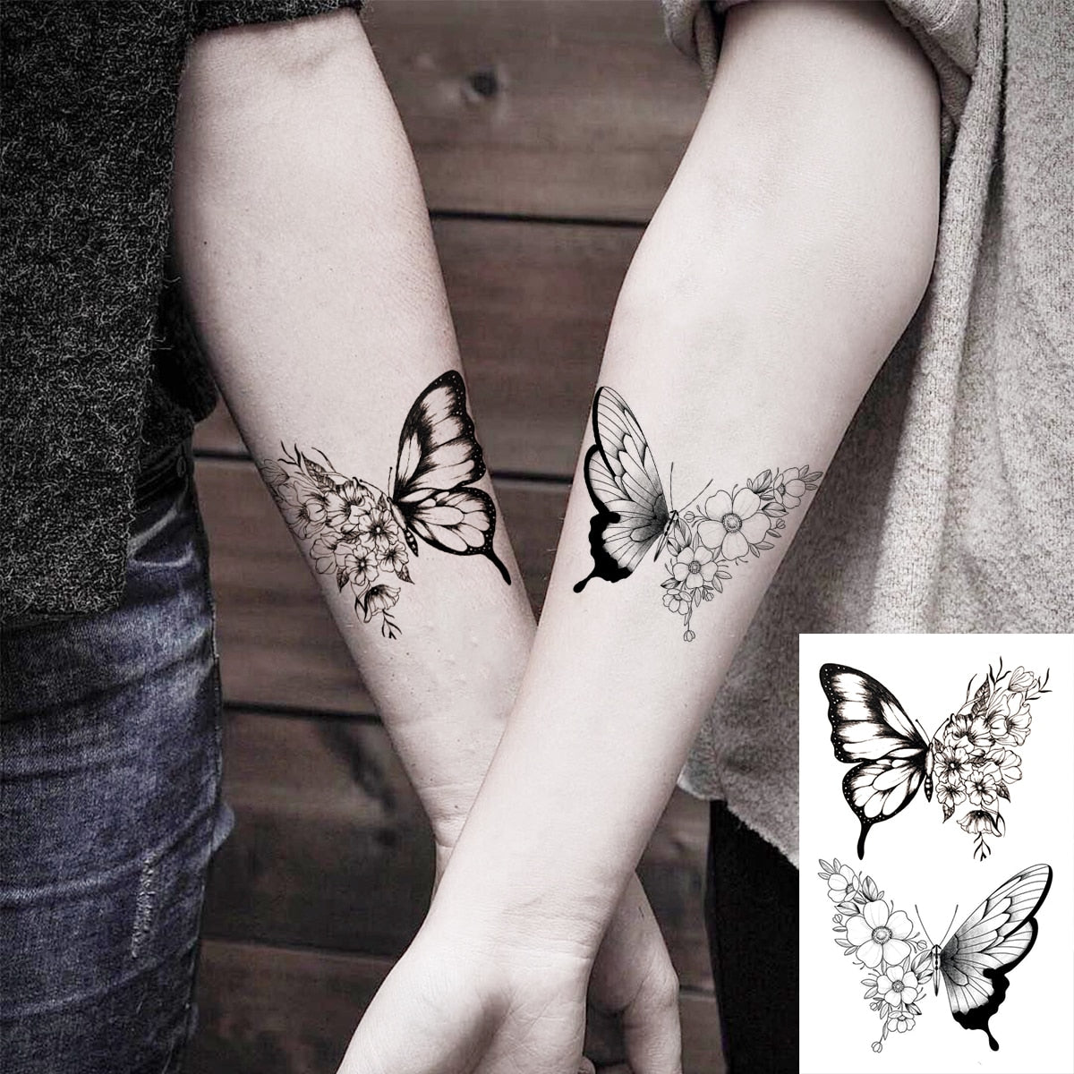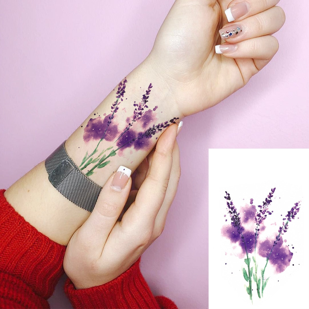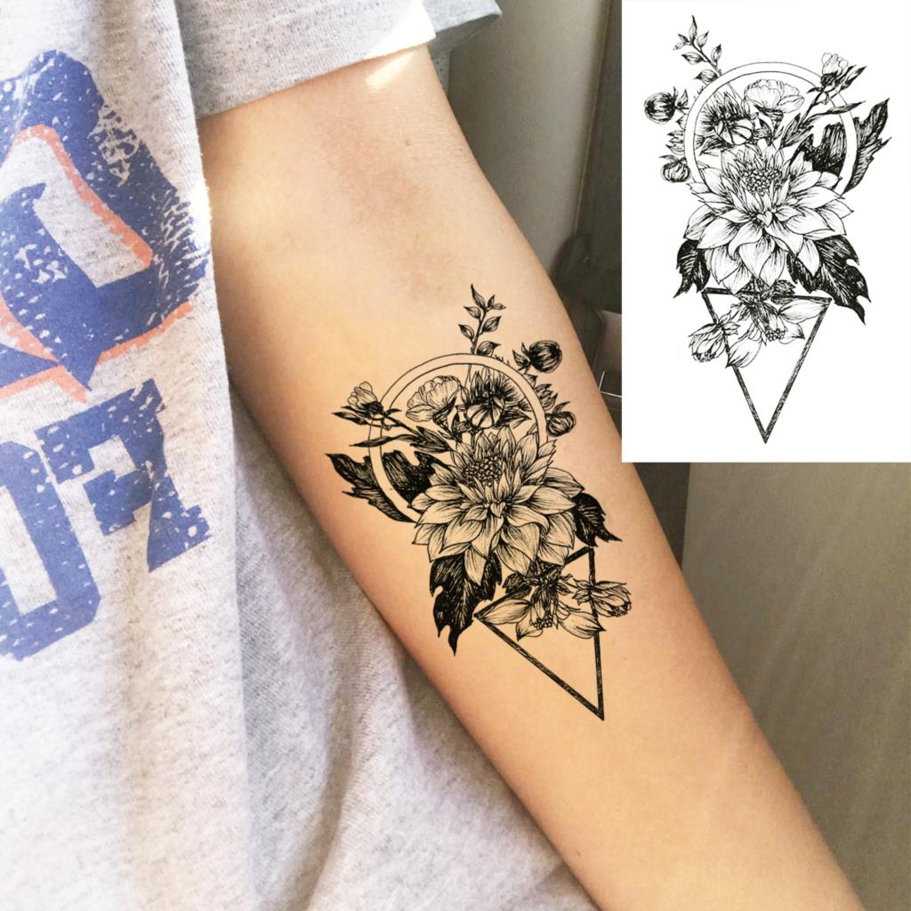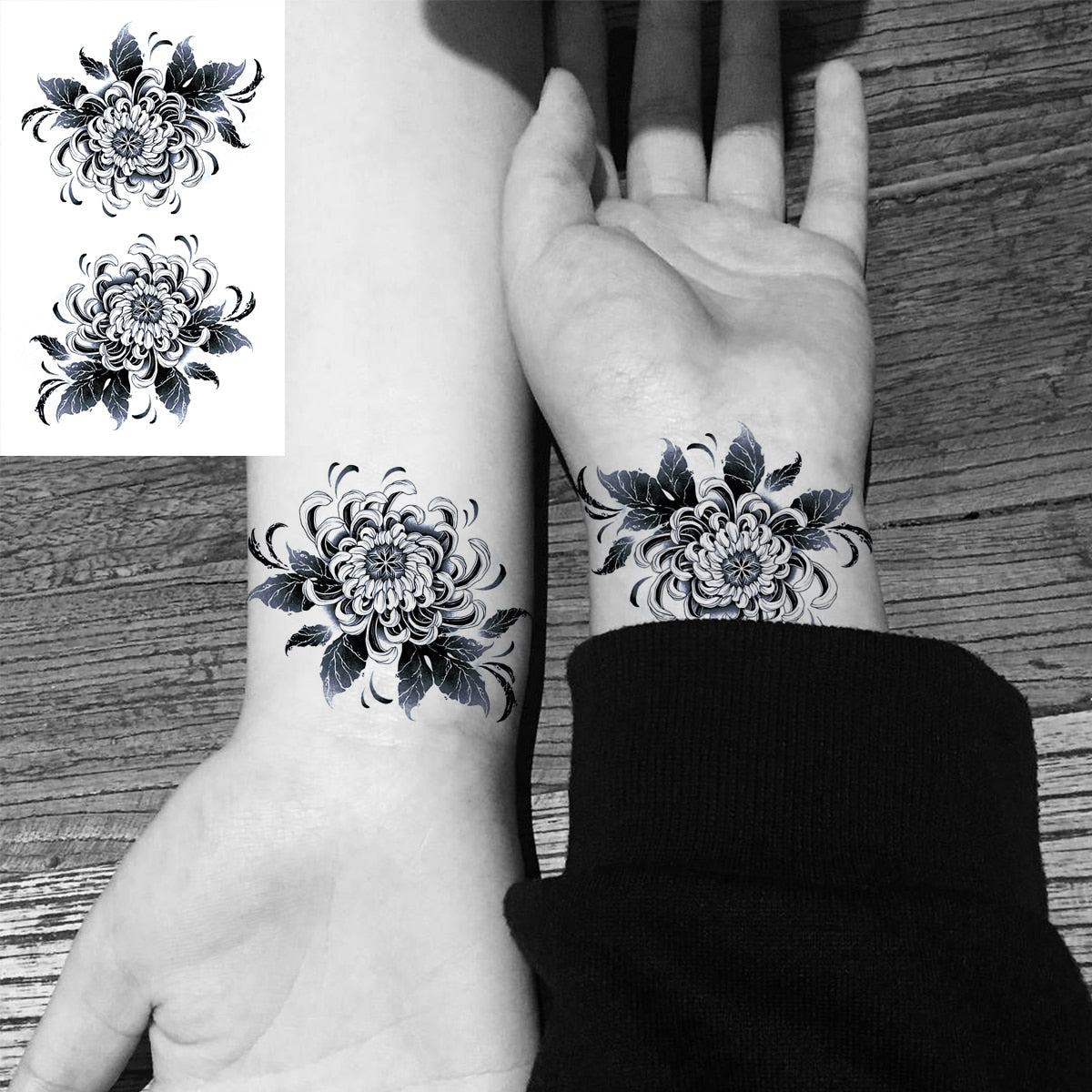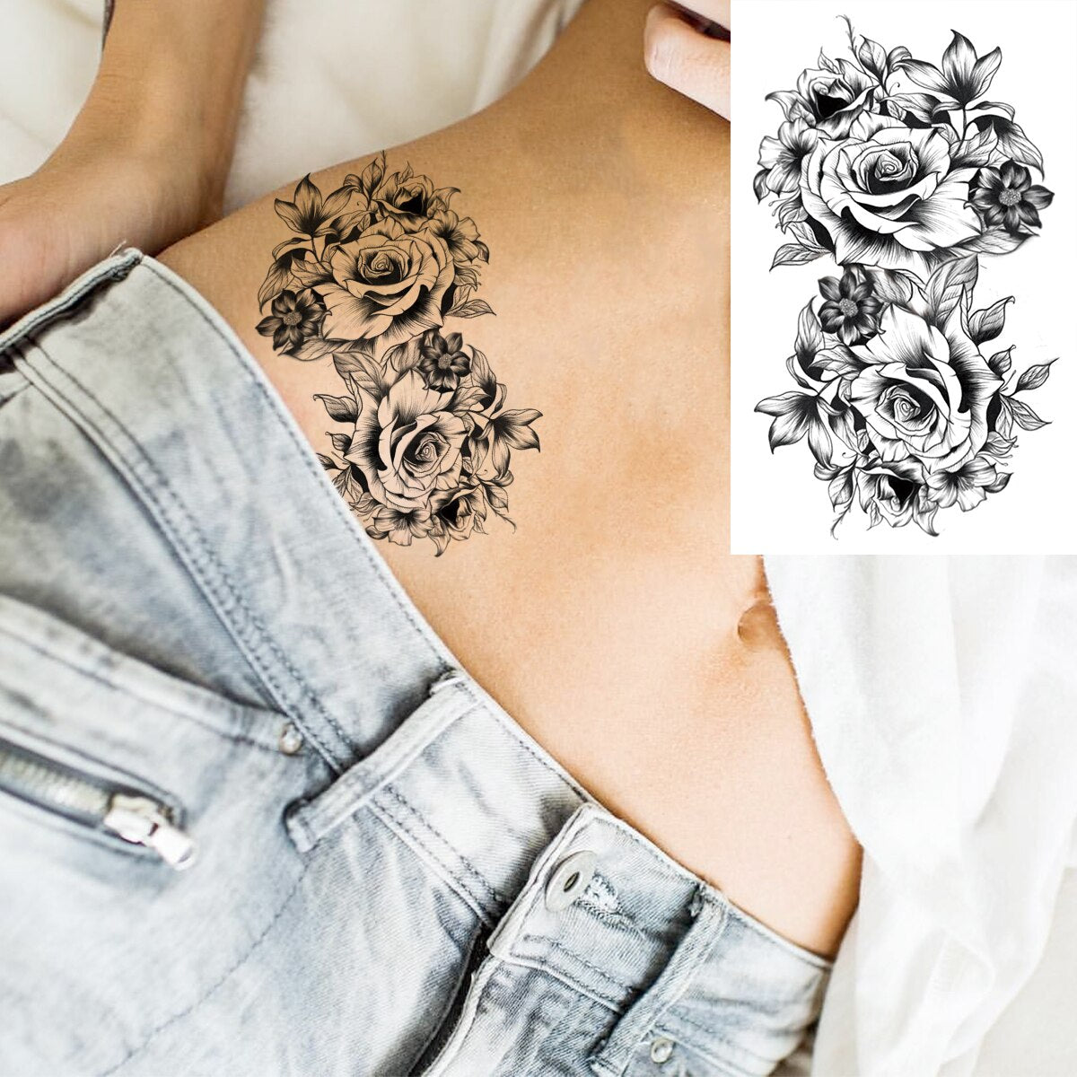 Black Little Flower Fashion Finger Temporary Tattoos For Women Adult Leaves Daisy Rose Fake Tattoo Letter Body Art Tatoos Decal