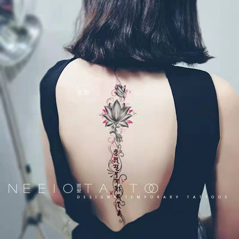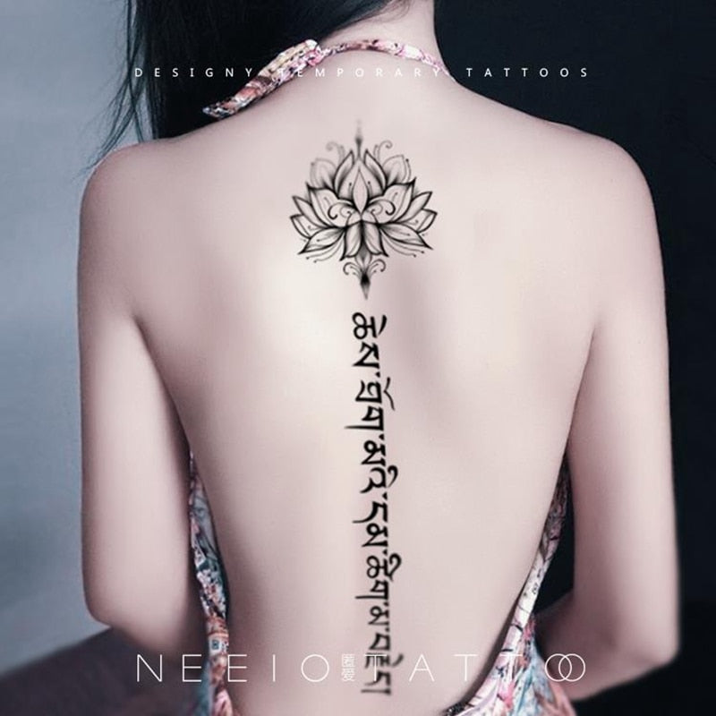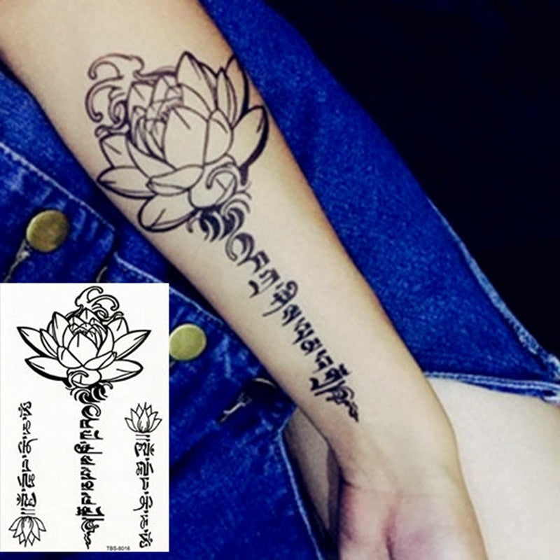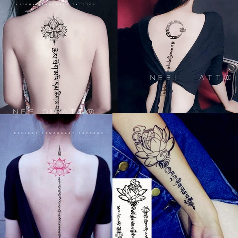 Black Lotus Totem Tattoo Stickers Waterproof Lasting Temporary Tattoo Sanskrit Art Fake Tattoo Back Arm Sexy Tattoos for Women