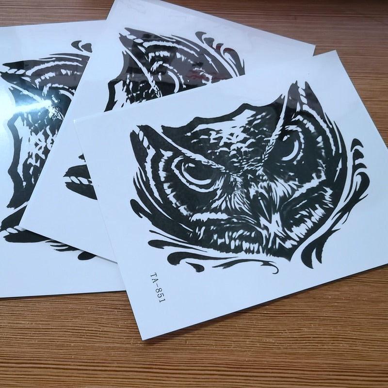 Black Owl Temporary Tattoo Sticker Waterproof Lasting Hand-Painted Hand Back Neck Fake Tattoo Big Personality Tattoo Sticker Men