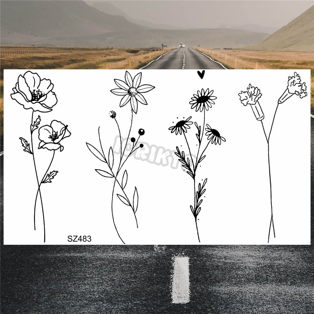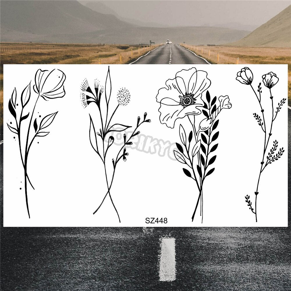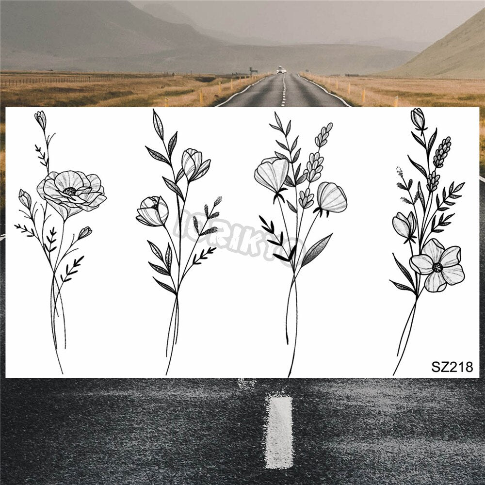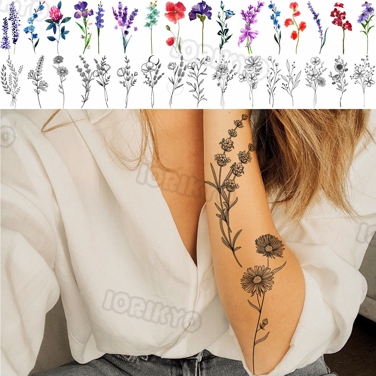 Black Poppy Flower Temporary Tattoos For Women Kids Realistic Lavender Plum Waterproof Fake Tattoo Sticker Tattoo Arm Body