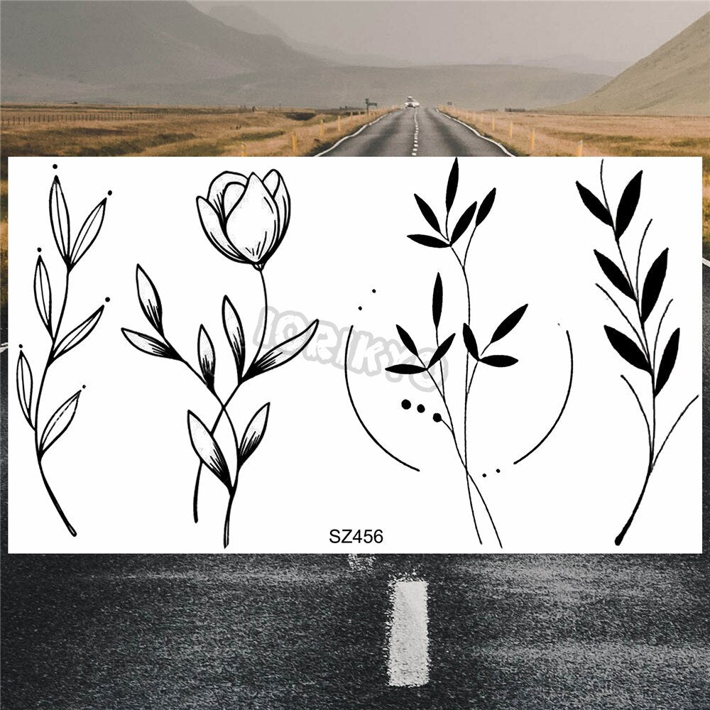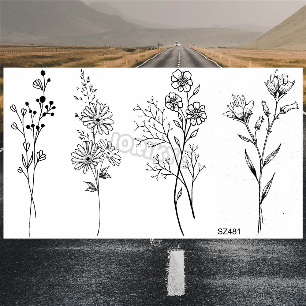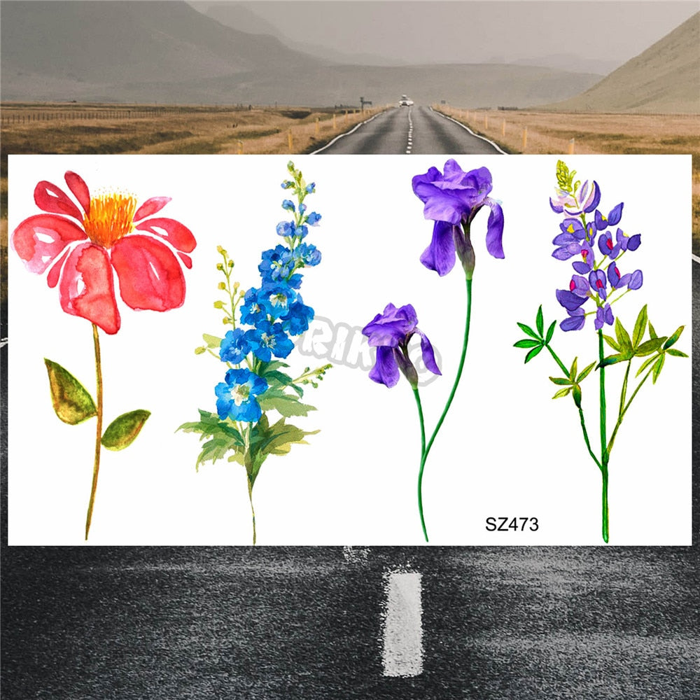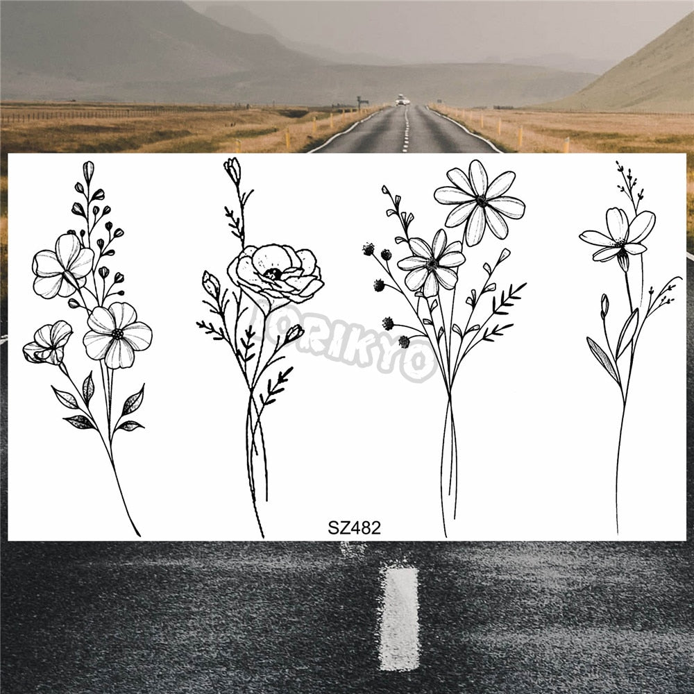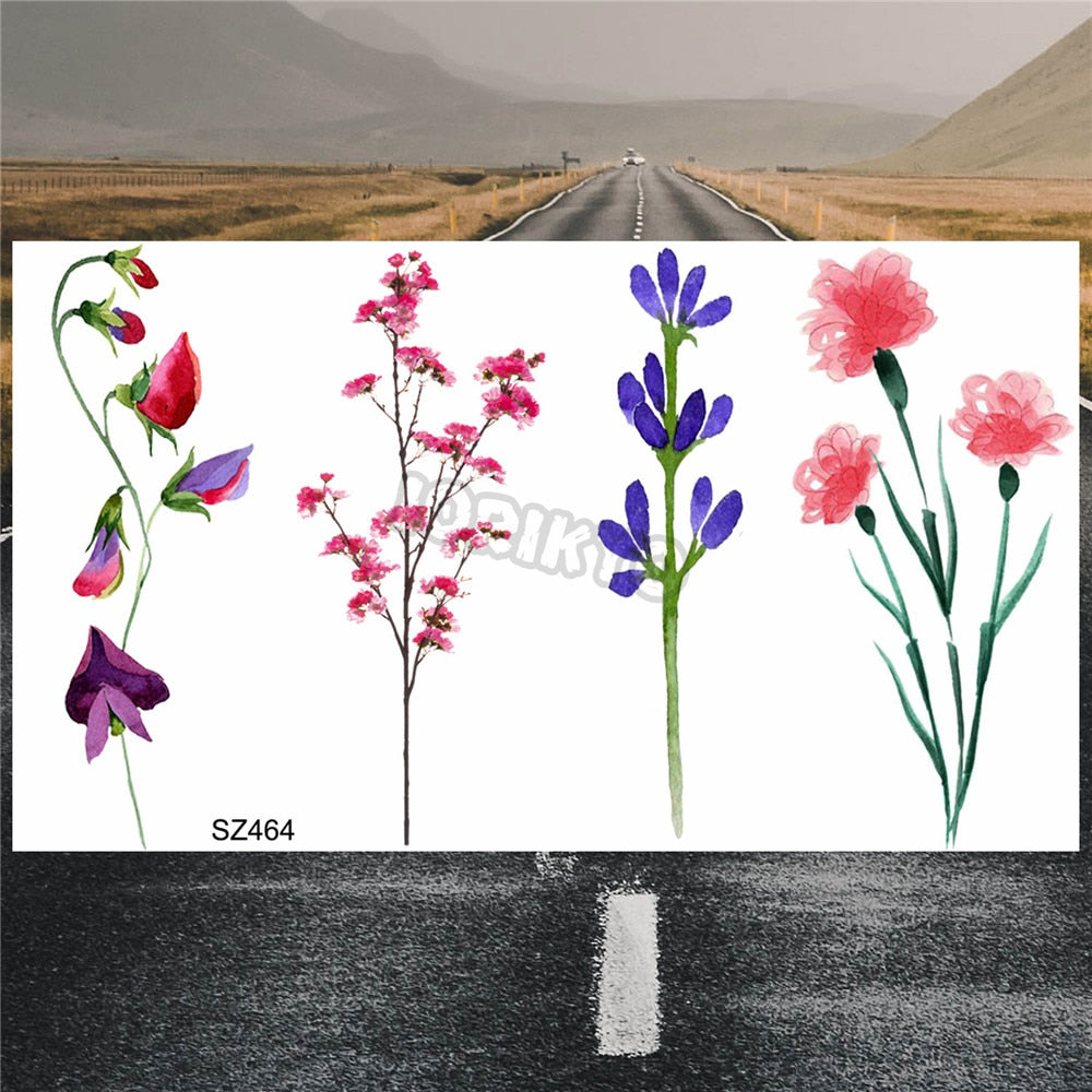 Black Poppy Flower Temporary Tattoos For Women Kids Realistic Lavender Plum Waterproof Fake Tattoo Sticker Tattoo Arm Body